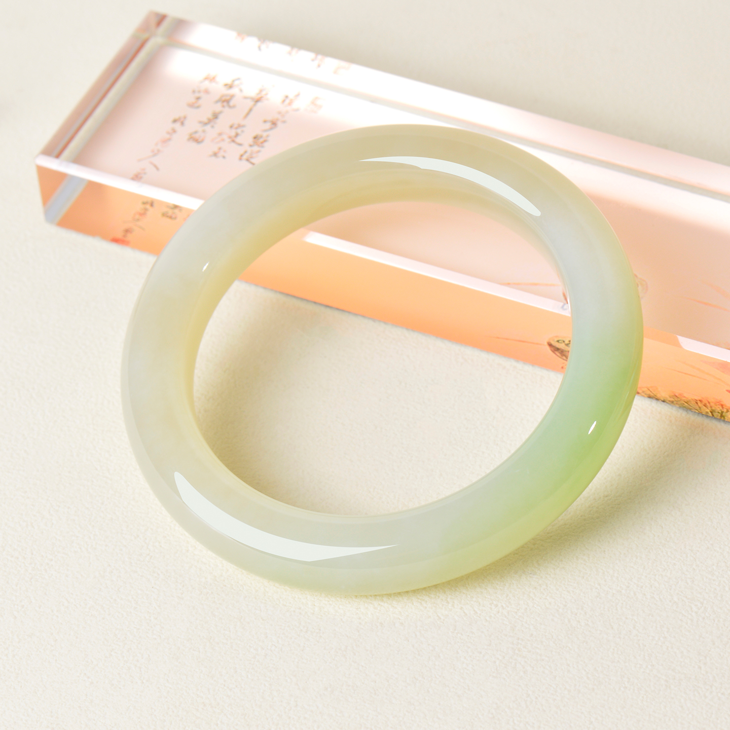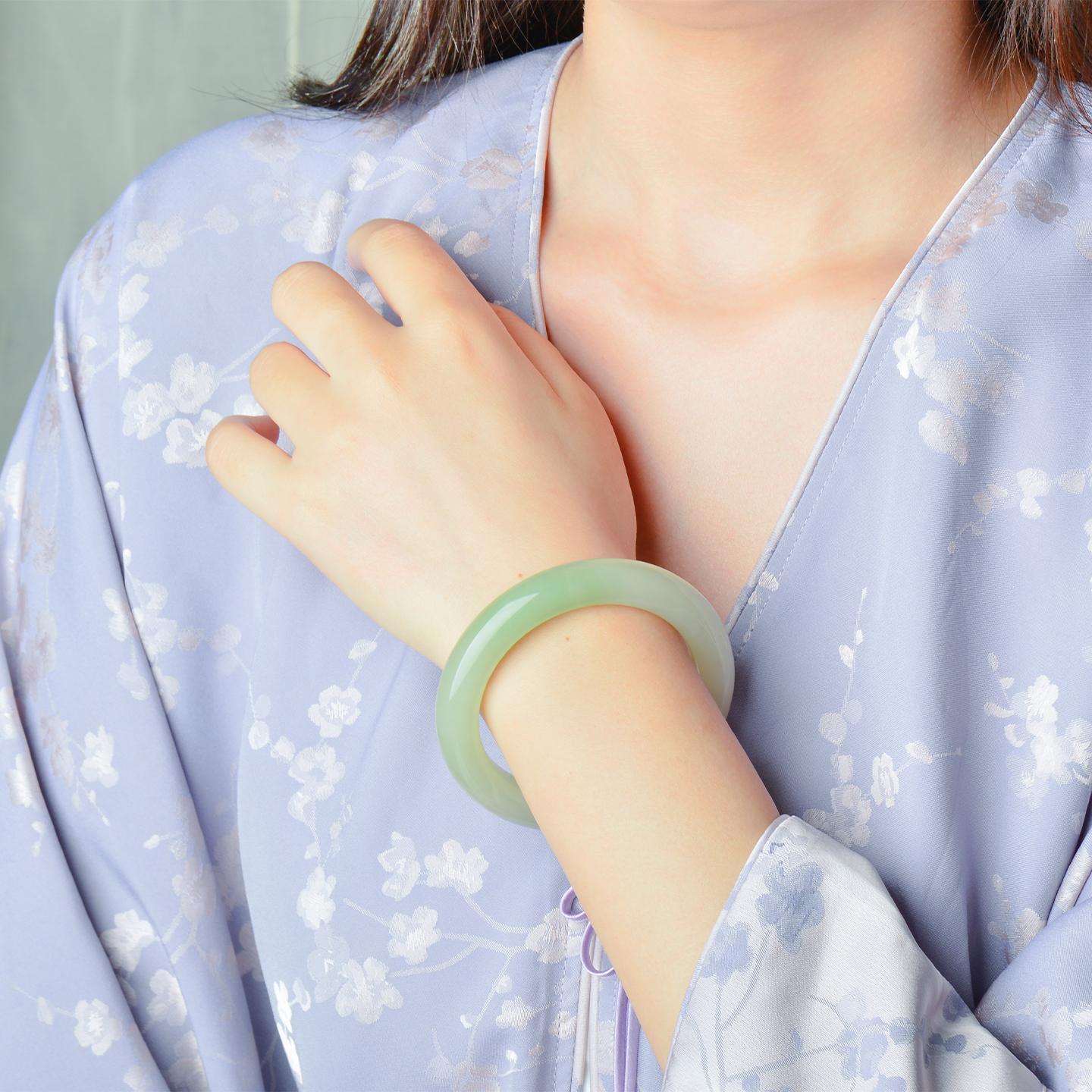 凤飞凰57.8mm和田玉翠青手镯女款玉镯宽镯玉石镯子女士正品0490