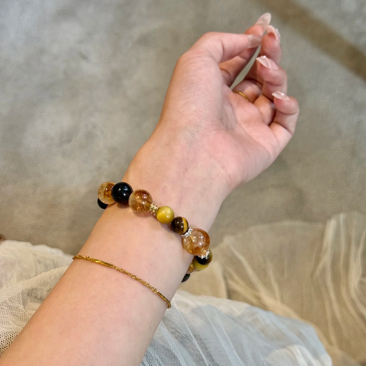 「招财水晶系列」原创设计天然黄塔晶黄虎眼招米米暴富手串手链女