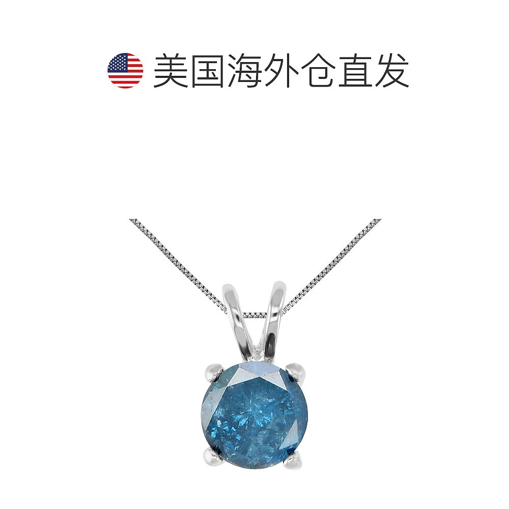 自营 vir jewels2 cttw 蓝色钻石单石吊坠项链 14K 白金圆形配链