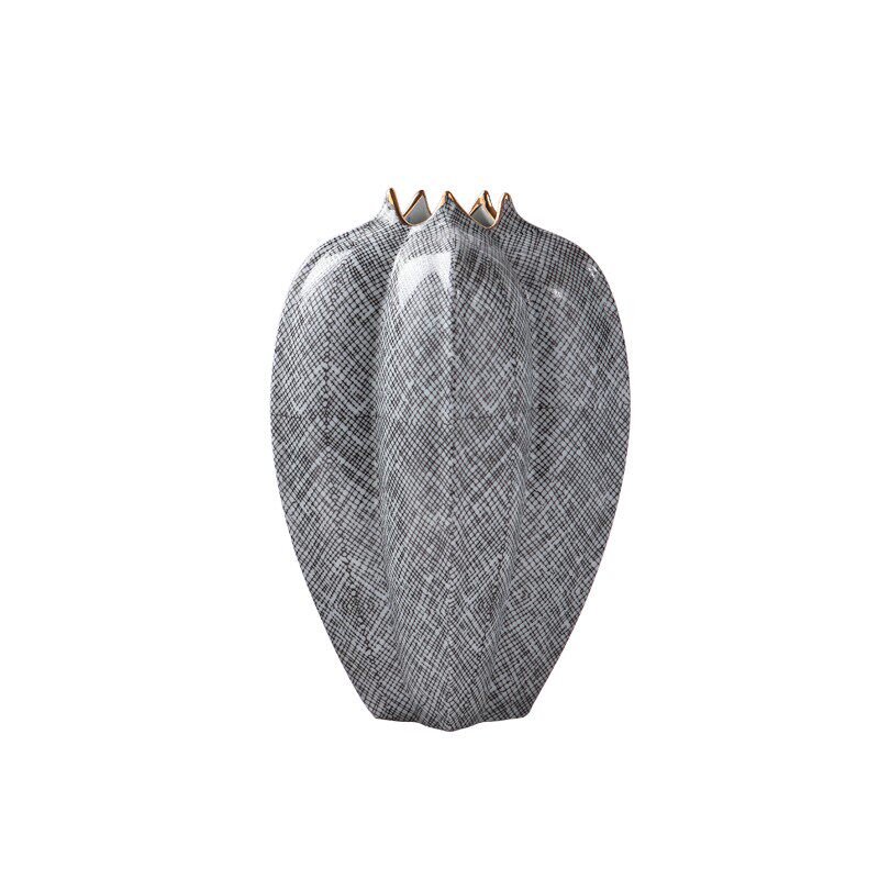 灰色网格杨桃陶瓷花瓶p摆件创意插花艺客厅酒店样板间摆设软装饰