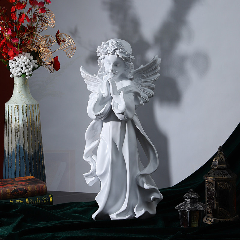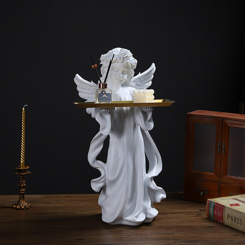 北欧大型树脂天使雕塑托盘落地艺术摆件客厅书房办公室装饰摆设品