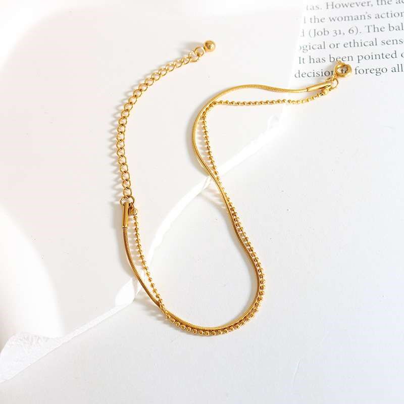 Ins Minimalist Brlet Double-layer Flat Snake Chain Rice Bead