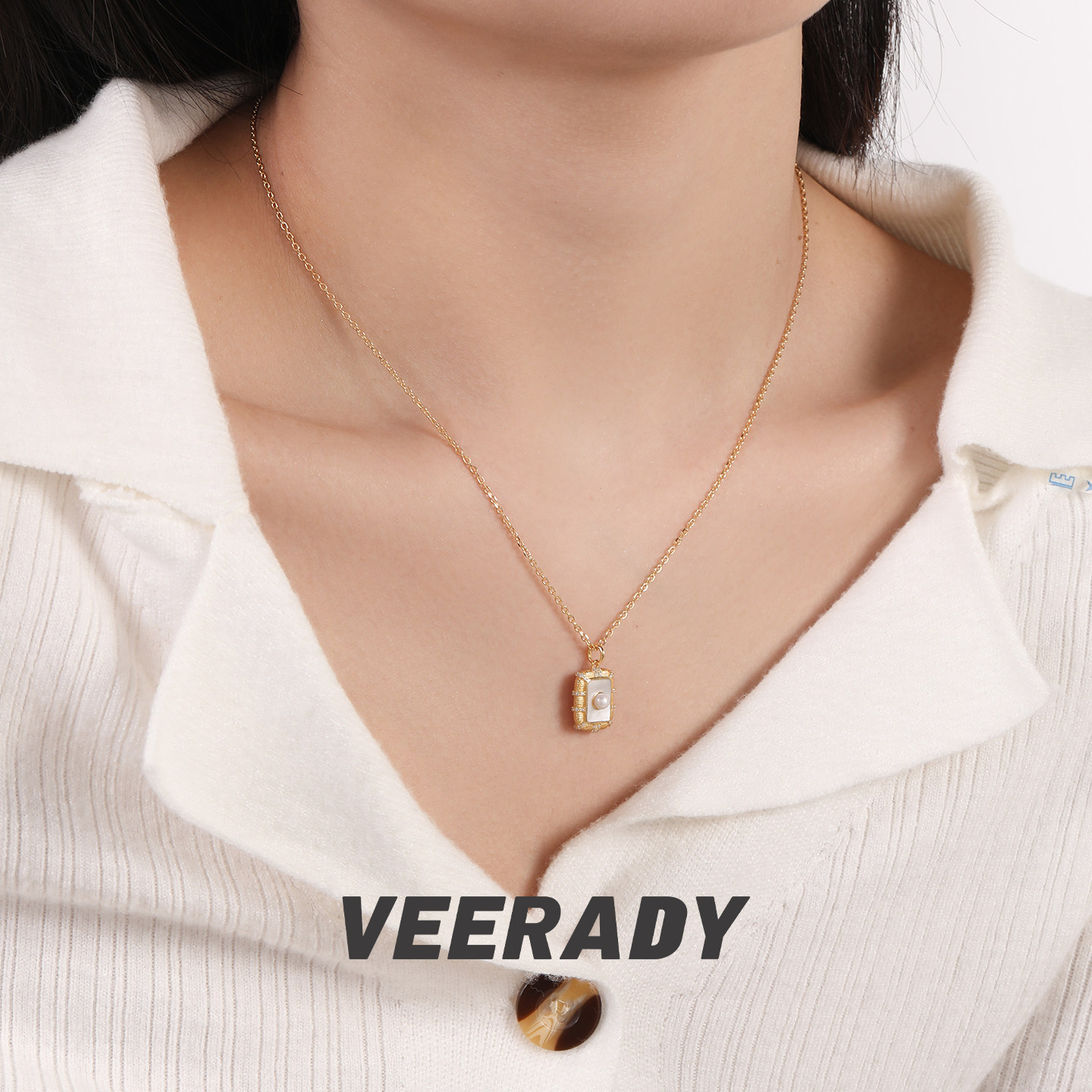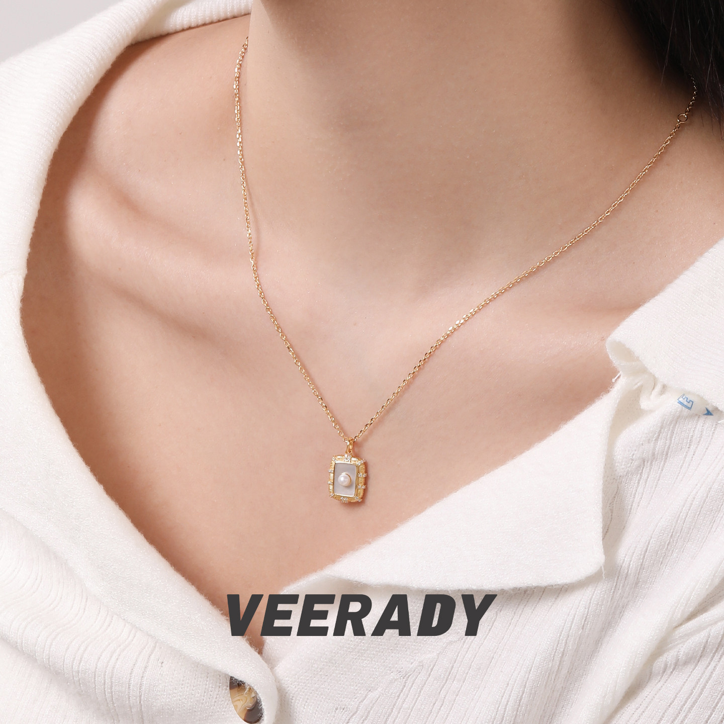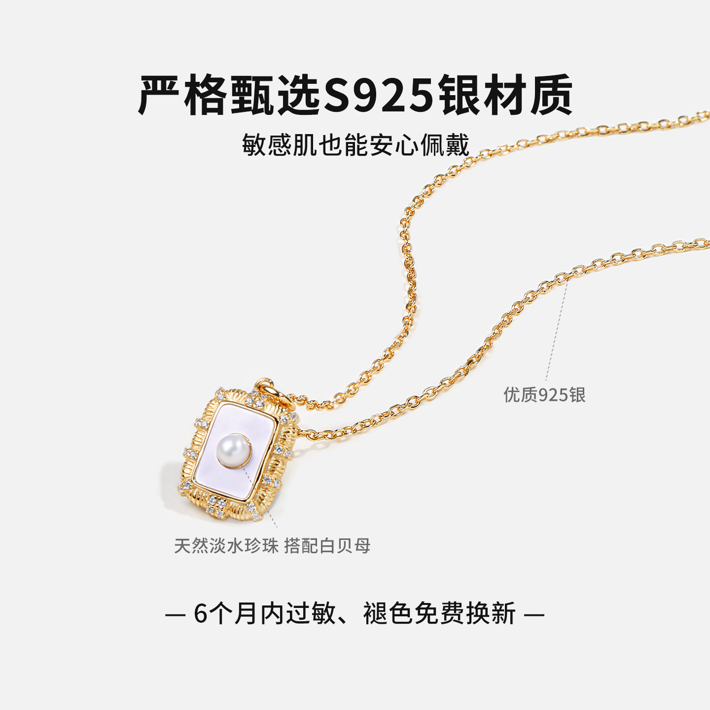 薇拉蒂S925纯银无事方牌珍珠项链法式贝母高级感轻奢小众锁骨链