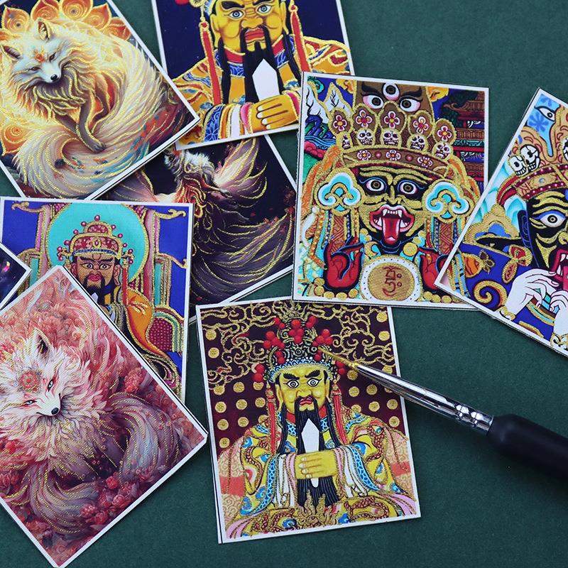五爷文殊手绘描金唐卡画布藏式可定图绿度母九尾狐仙唐卡画布