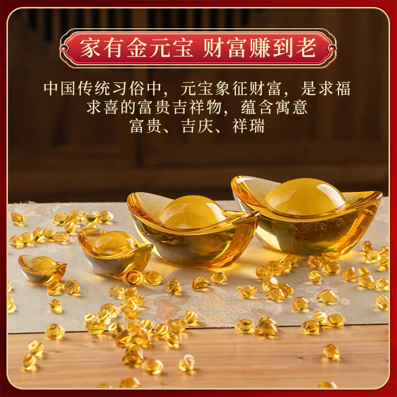 聚财黄水晶元宝摆件小元宝琉璃大号金元宝招财聚宝盆碎石乔迁礼品