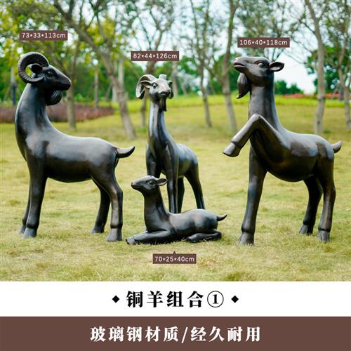 室外摆件大型草坪摆设雕塑模型仿铜山羊园林玻璃钢摆设景观装饰品