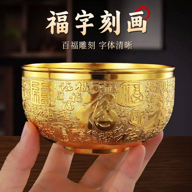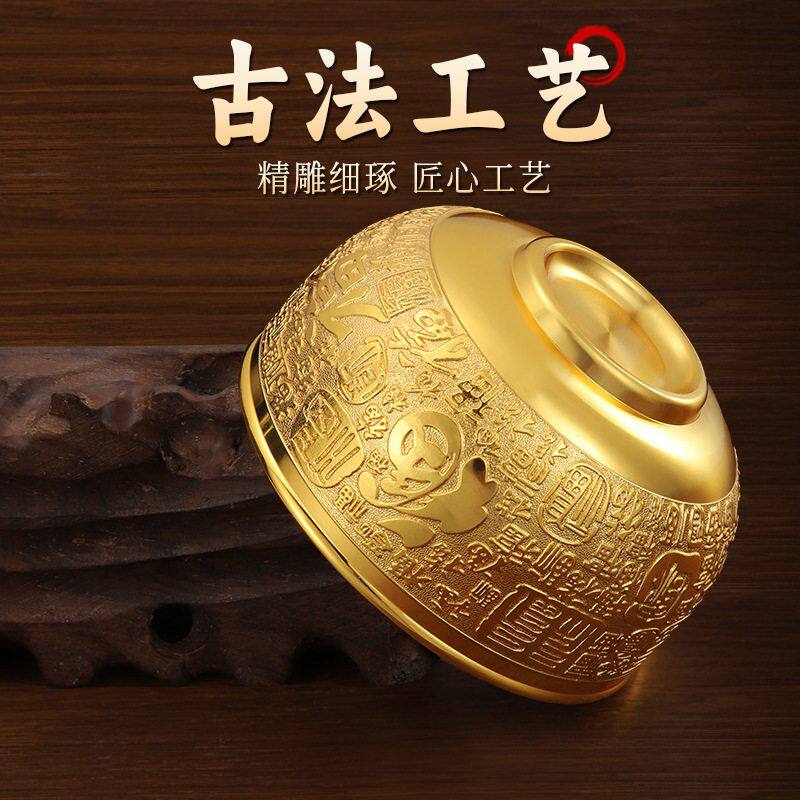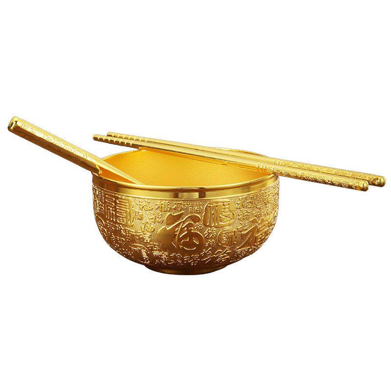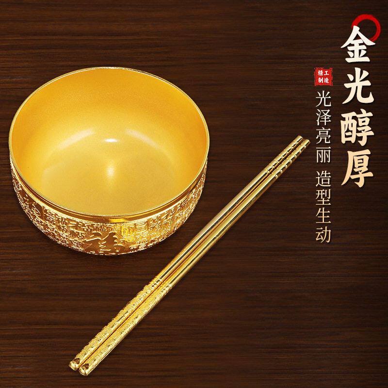 铜碗筷纯黄铜金色供水碗工艺金饭碗金筷子家用摆件三件套铜匙招财
