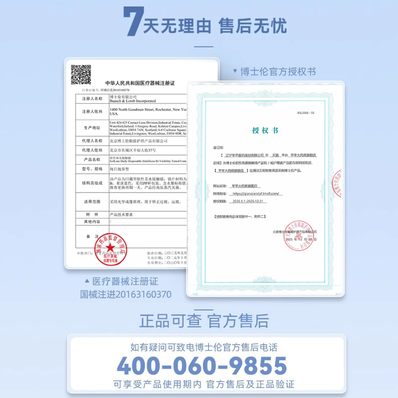 30片/10片博士伦隐形近视眼镜清朗一日日抛5片盒透明片官方旗舰店