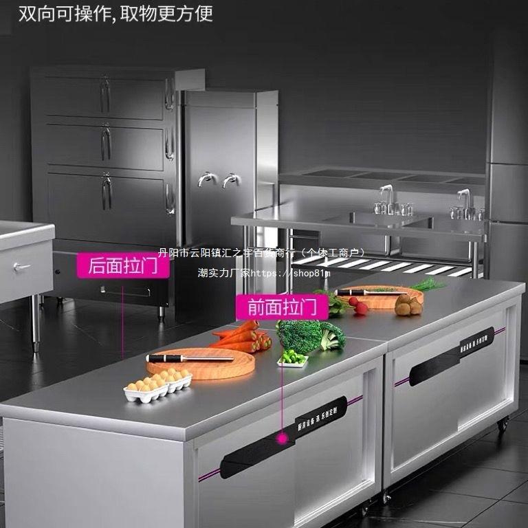 304超厚不锈钢拉门工作台厨房工作台操作台打荷台商用家用储物柜