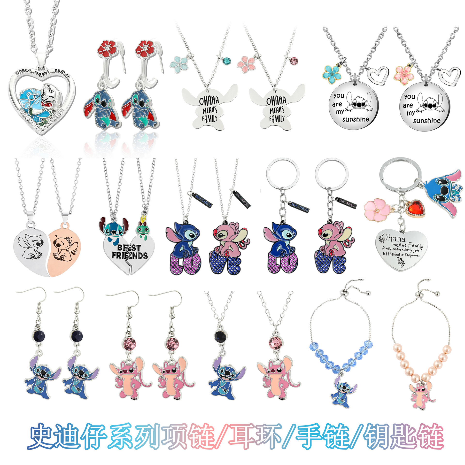 跨境动画片卡通宝贝金属史迪仔安琪钥耳环项链钥匙扣挂件饰品