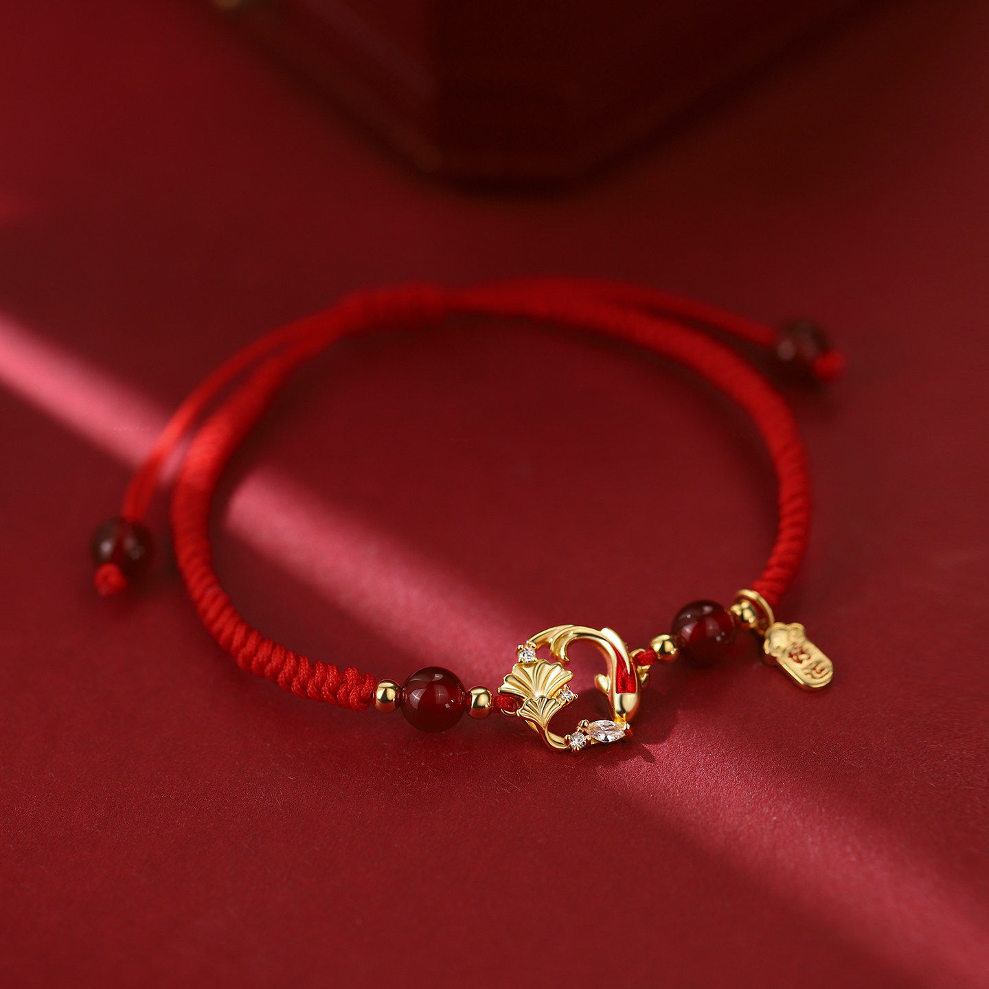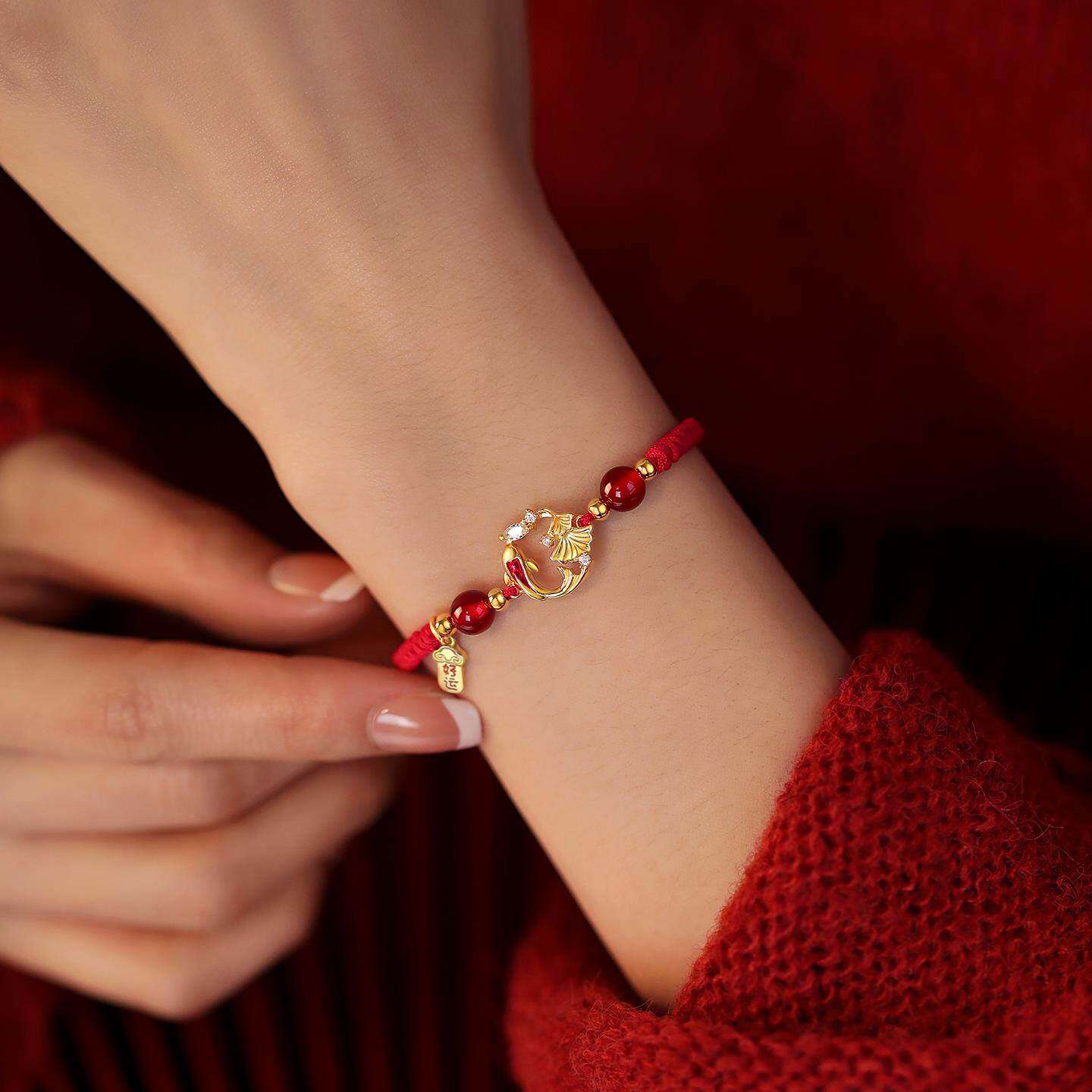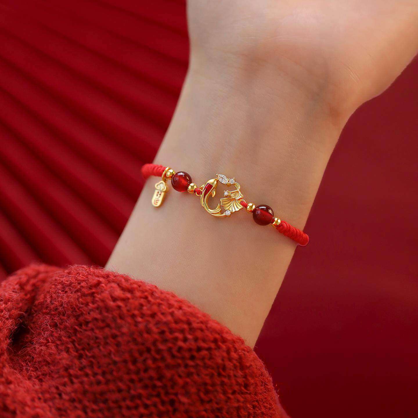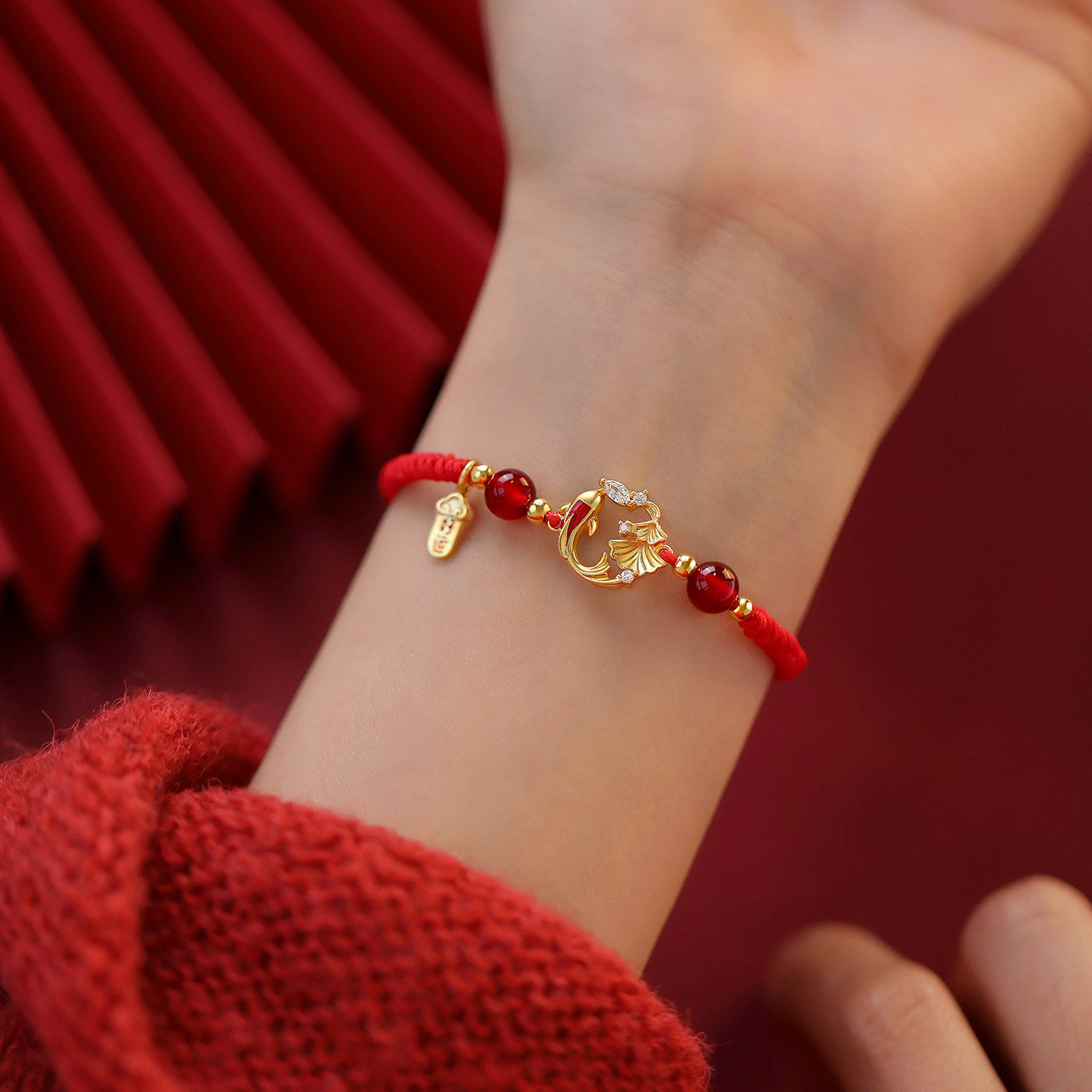 杏运锦鲤红色手链女款轻奢小众精致高级感本命年百搭编织红绳手饰