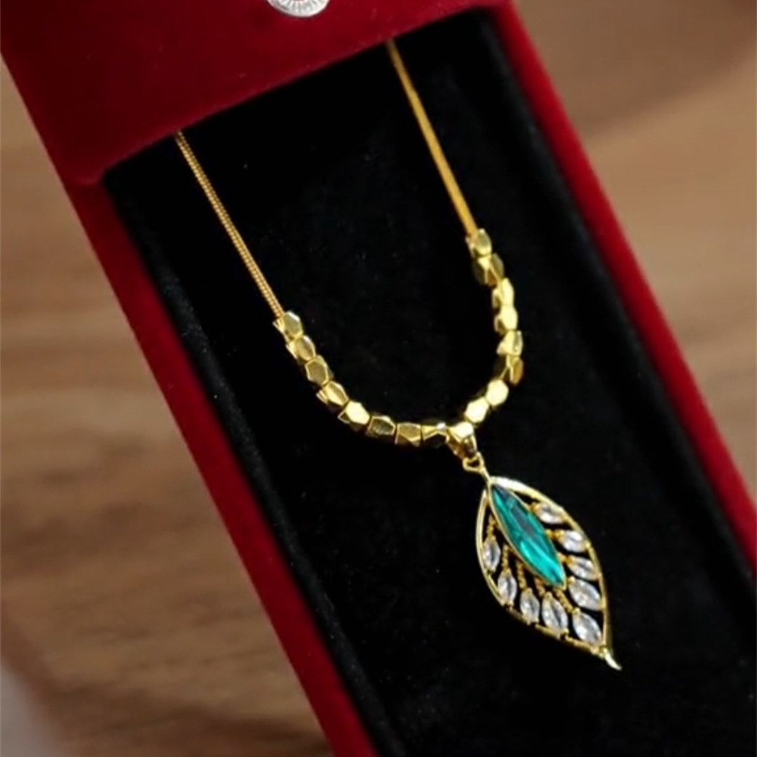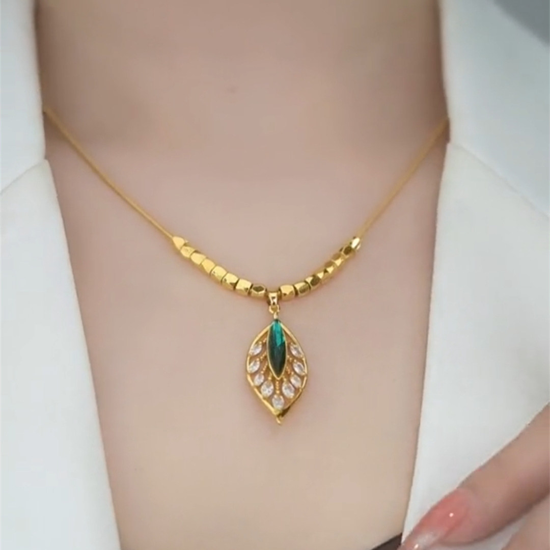 高级感绿色叶子项链女金枝玉叶设计感网红百搭锁骨链2023新款吊坠