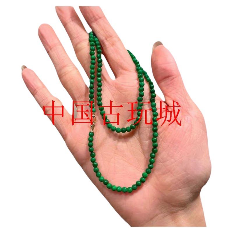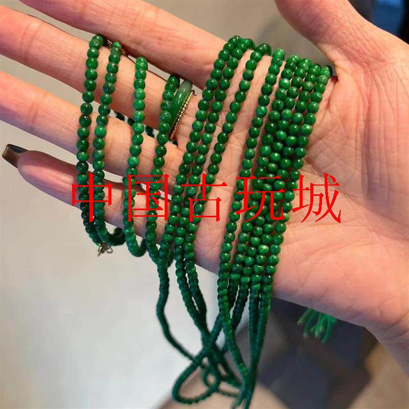 干青翡翠色项链锁骨链铁龙生满绿色辣绿圆珠小米珠新中式多圈手串