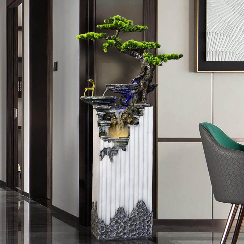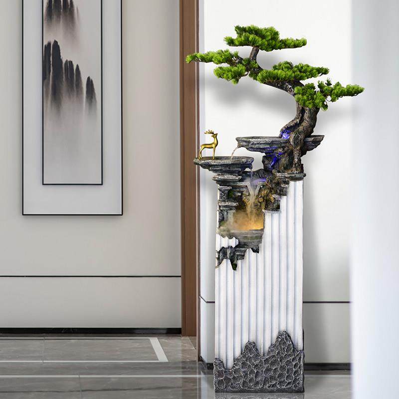 大型落地新中式客厅玄关流水摆件轻奢装饰喷泉假山水景迎客松