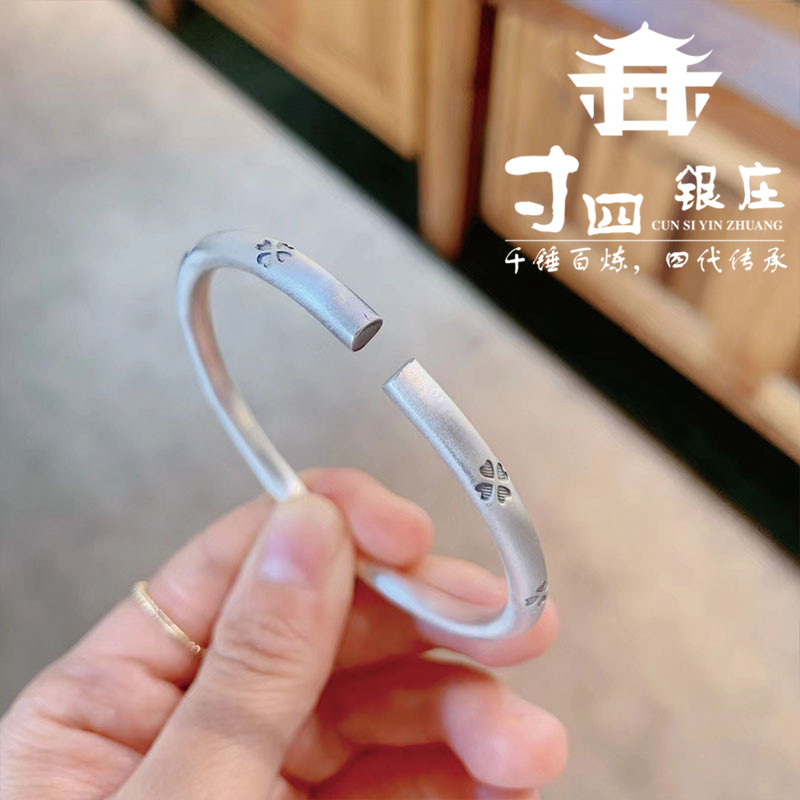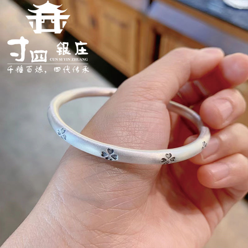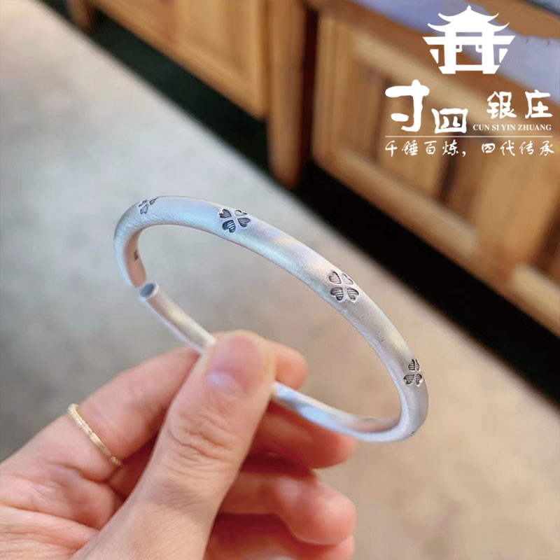 大理寸四银庄 四叶草手镯 手工打造 复古哑光工艺 足银999