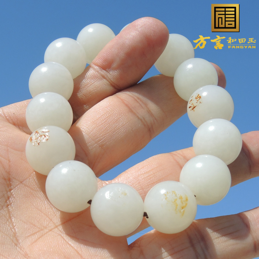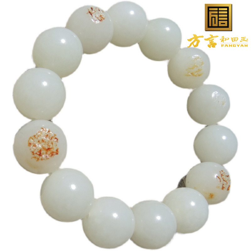 方言巨漏红皮珍稀白色名品高白羊脂玉籽料16mm14颗圆珠豪华手链R
