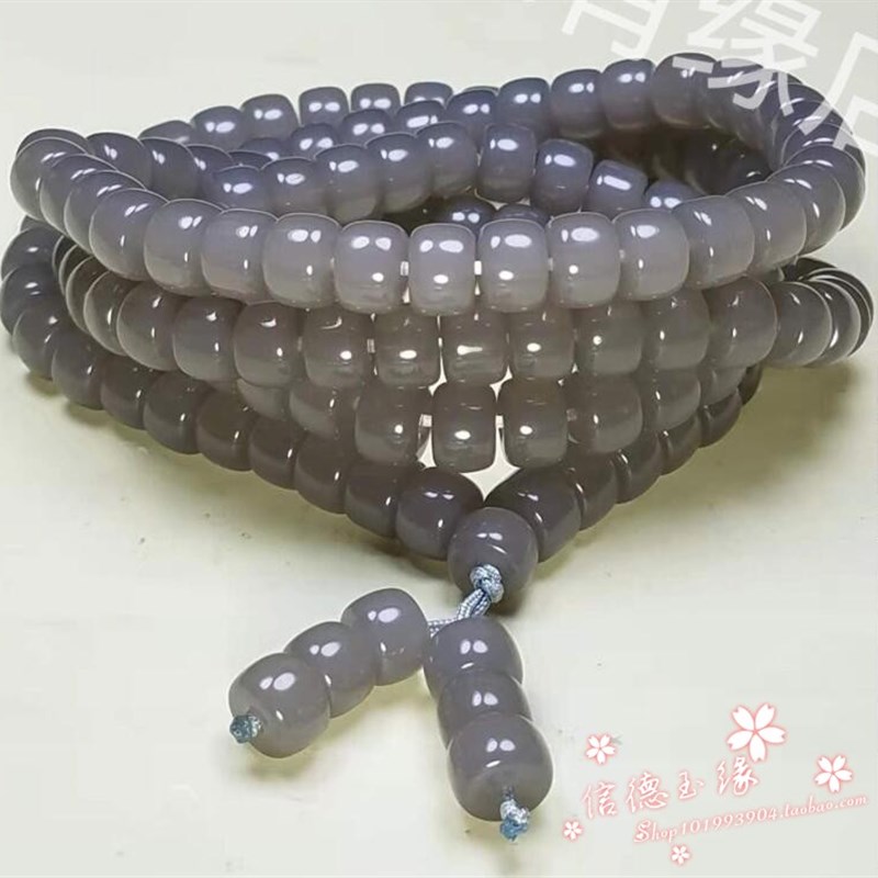 和田色玉烟紫色108颗珠子手链男女湖水绿羊脂色玉石佛珠转运手串