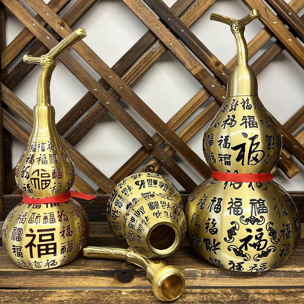 百福葫芦摆件纯铜黄铜葫芦空心开口开盖挂件家用客厅办公室摆放