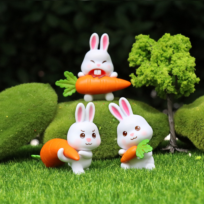 卡通仿真小动物模型可爱抱萝卜小兔子盲盒玩具微景观烘焙蛋糕摆件