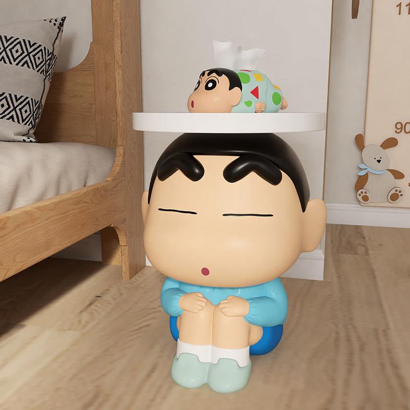 客厅沙发边几电视柜旁边儿童房床头柜落地小桌子装饰蜡笔小新摆件