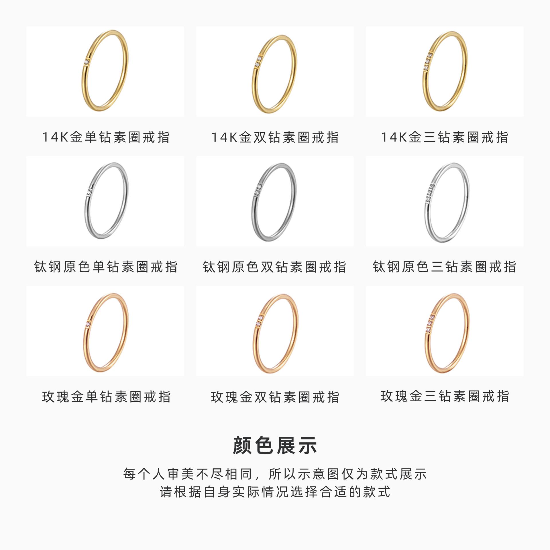 ins潮欧美锆石镶钻素圈戒指14k简约小众设计指环女钛钢不掉色饰品