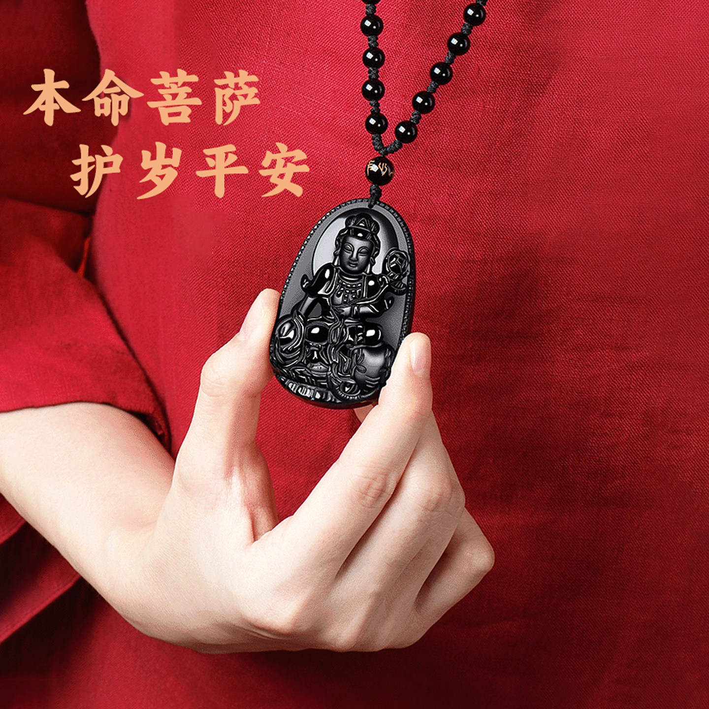 普陀山天然黑曜石吊坠本命佛十二生肖定制菩萨本命年观音项链男女