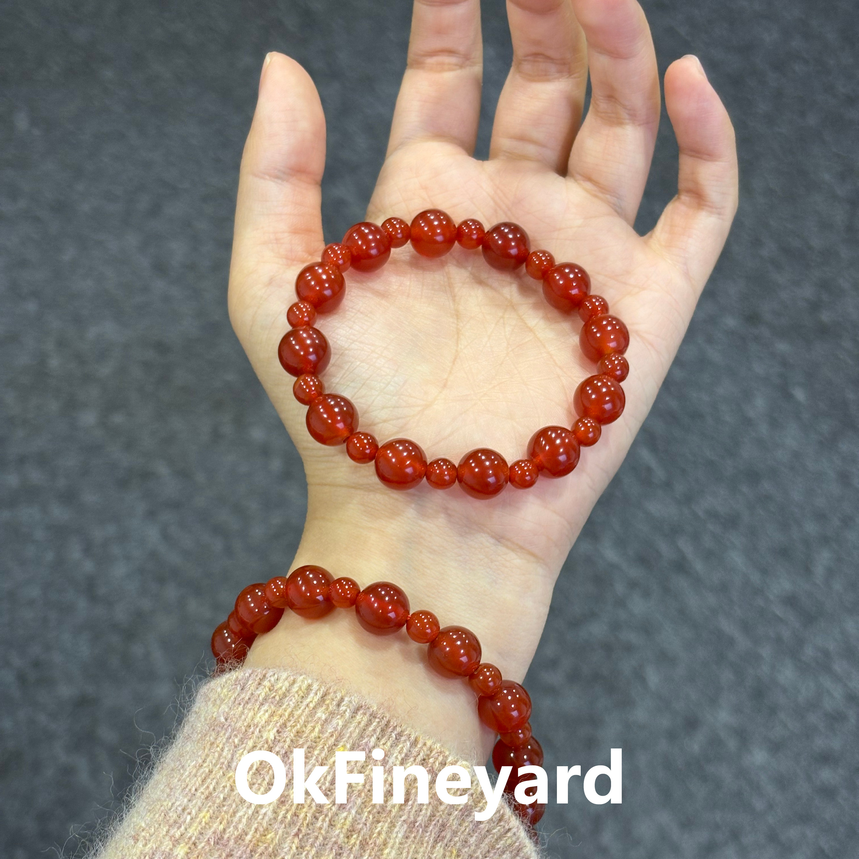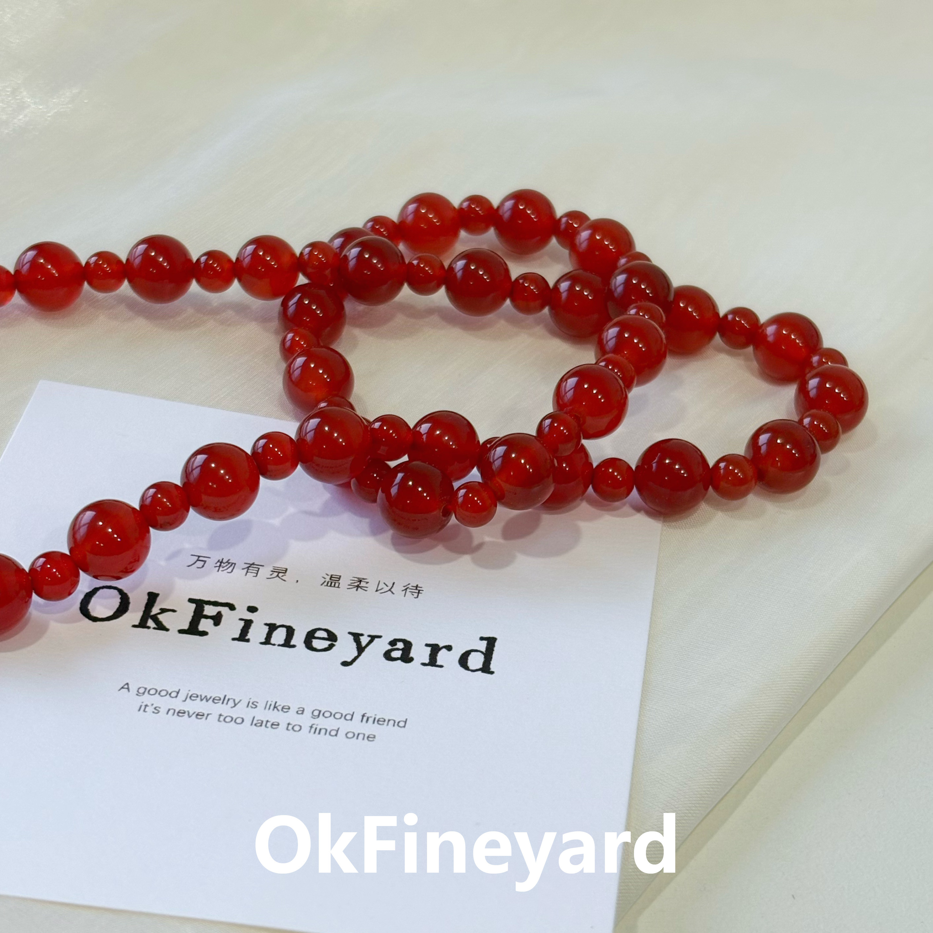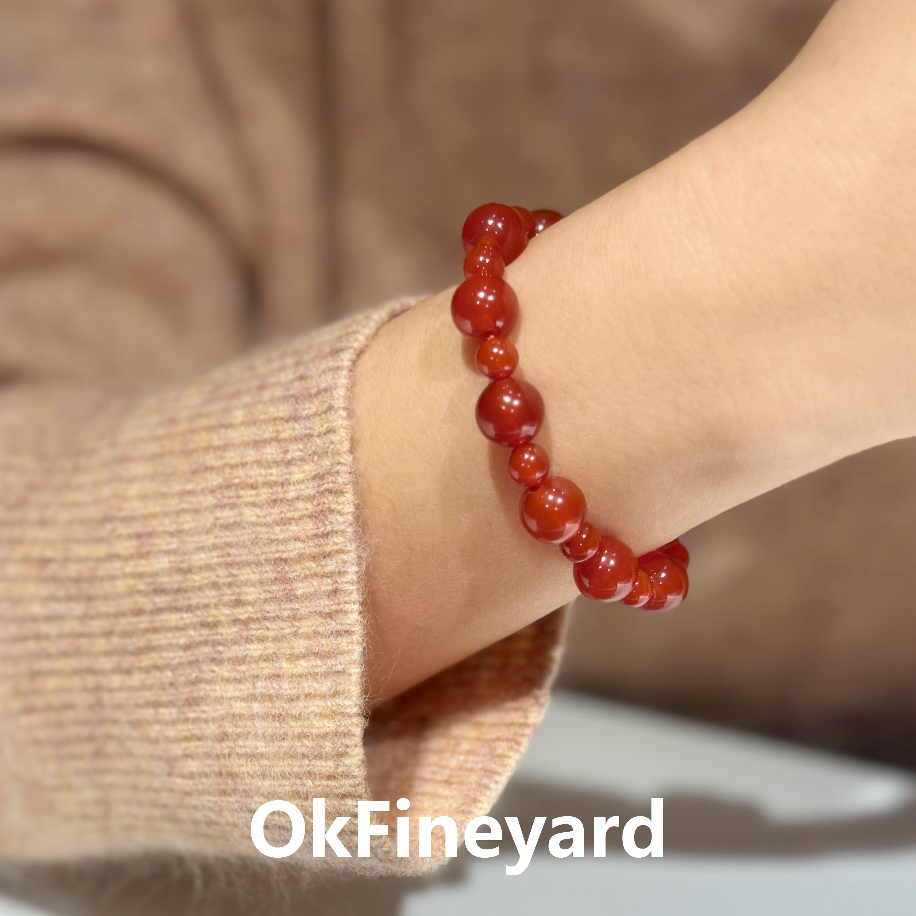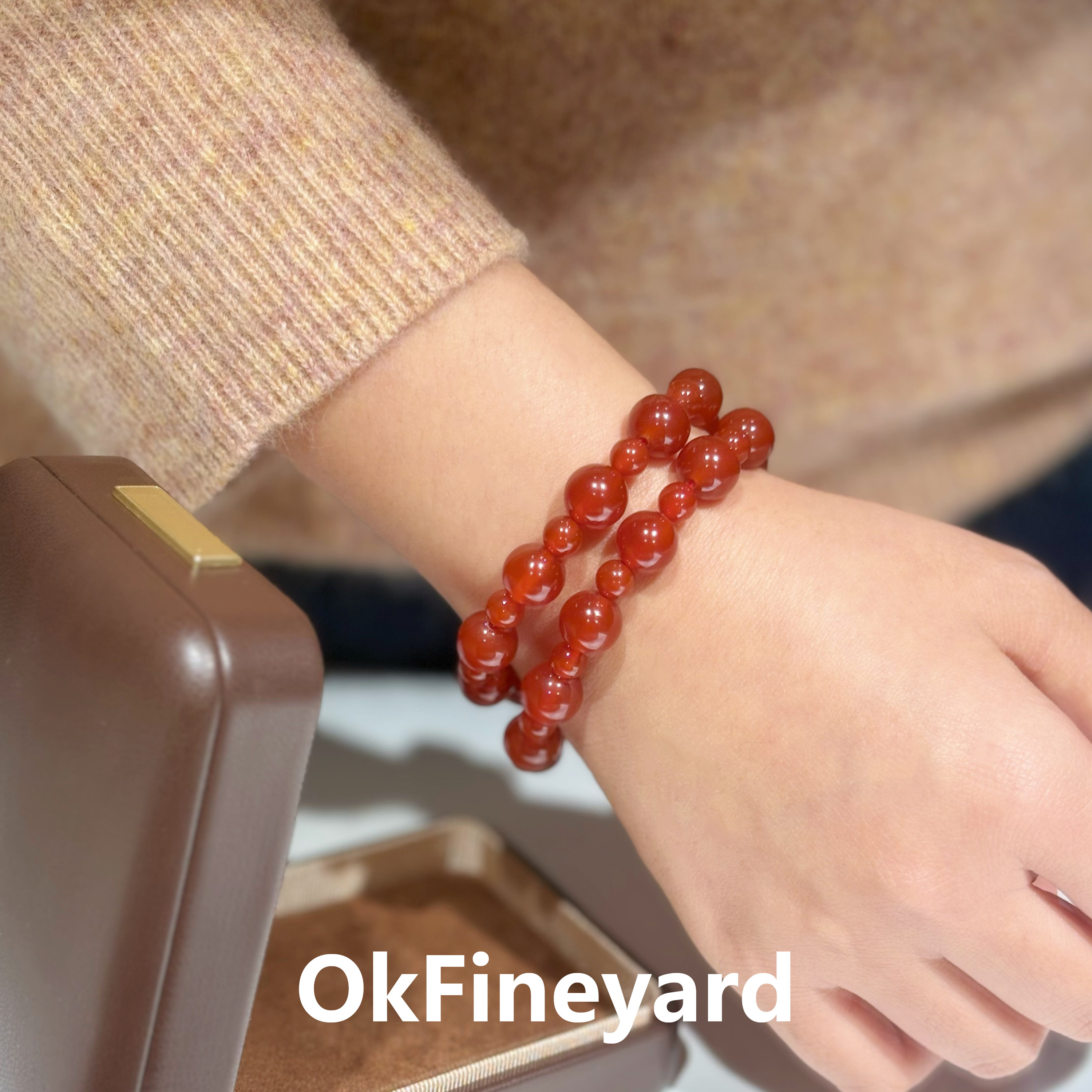 OkFineyard天然红玛瑙手串女复古高级感单双圈红色本命年手链礼物