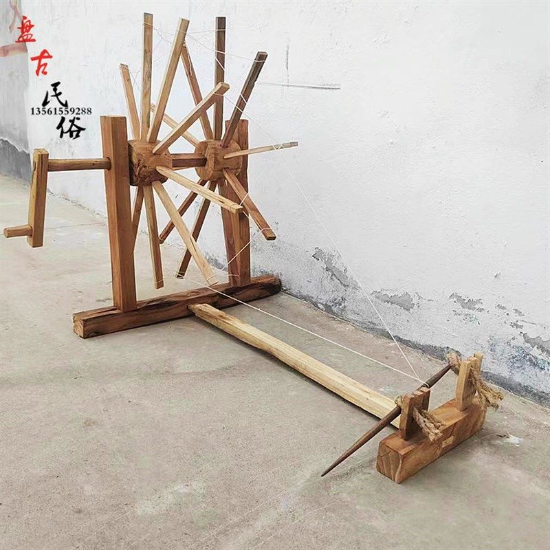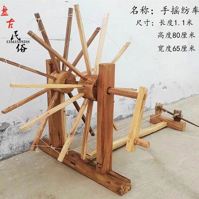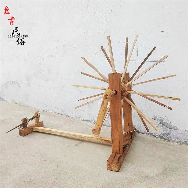怀旧手摇纺车织布机梭子刷线刷子竹篦子缯放线轴缠线轮.子木老物