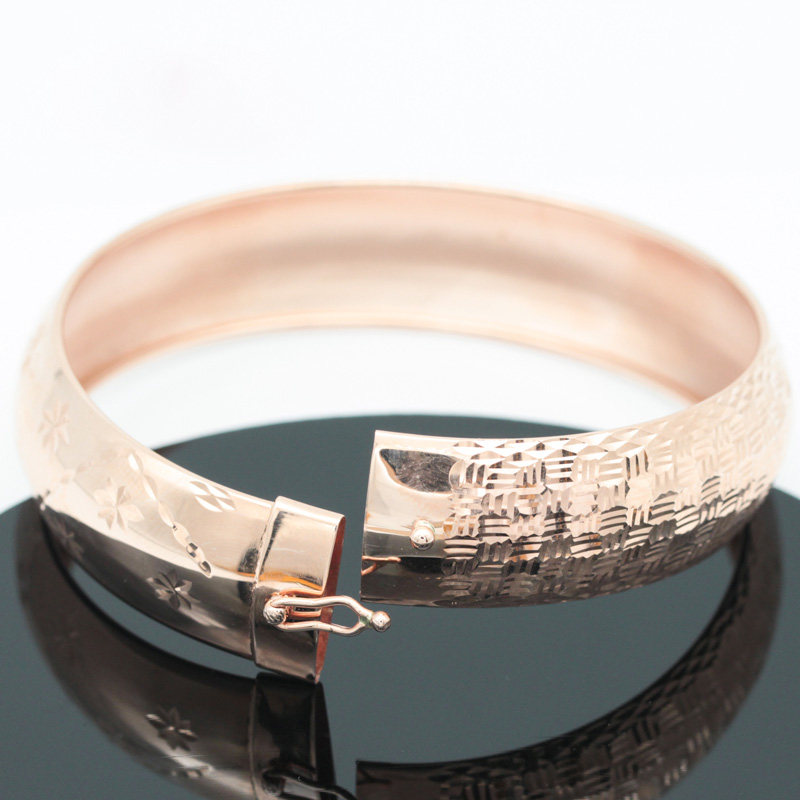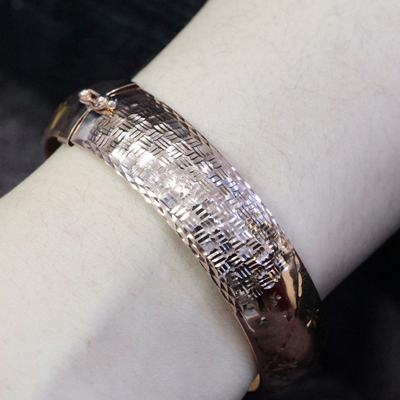 俄罗斯585紫金欧洲镀14K玫瑰金车花手镯精美女款时尚简约礼物精致