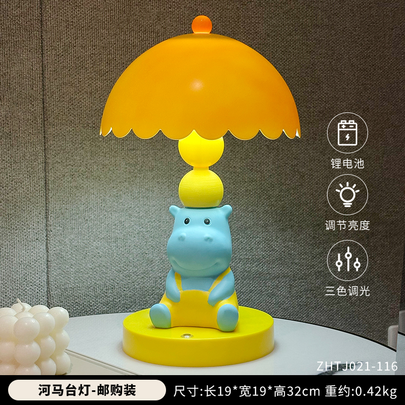 创意河马台灯桌面摆件儿童卧室床头灯装饰小夜灯乔迁新居生日礼物