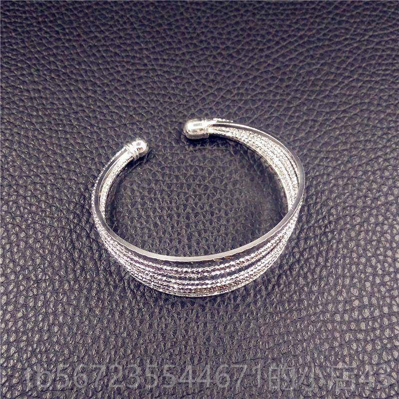 高档925纯银手层镯女 西宫银饰手开多口银环 星星图案日韩风