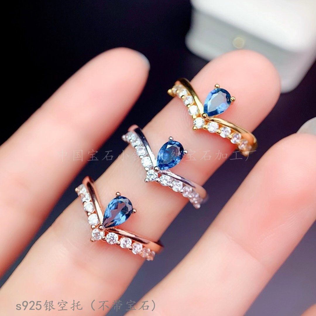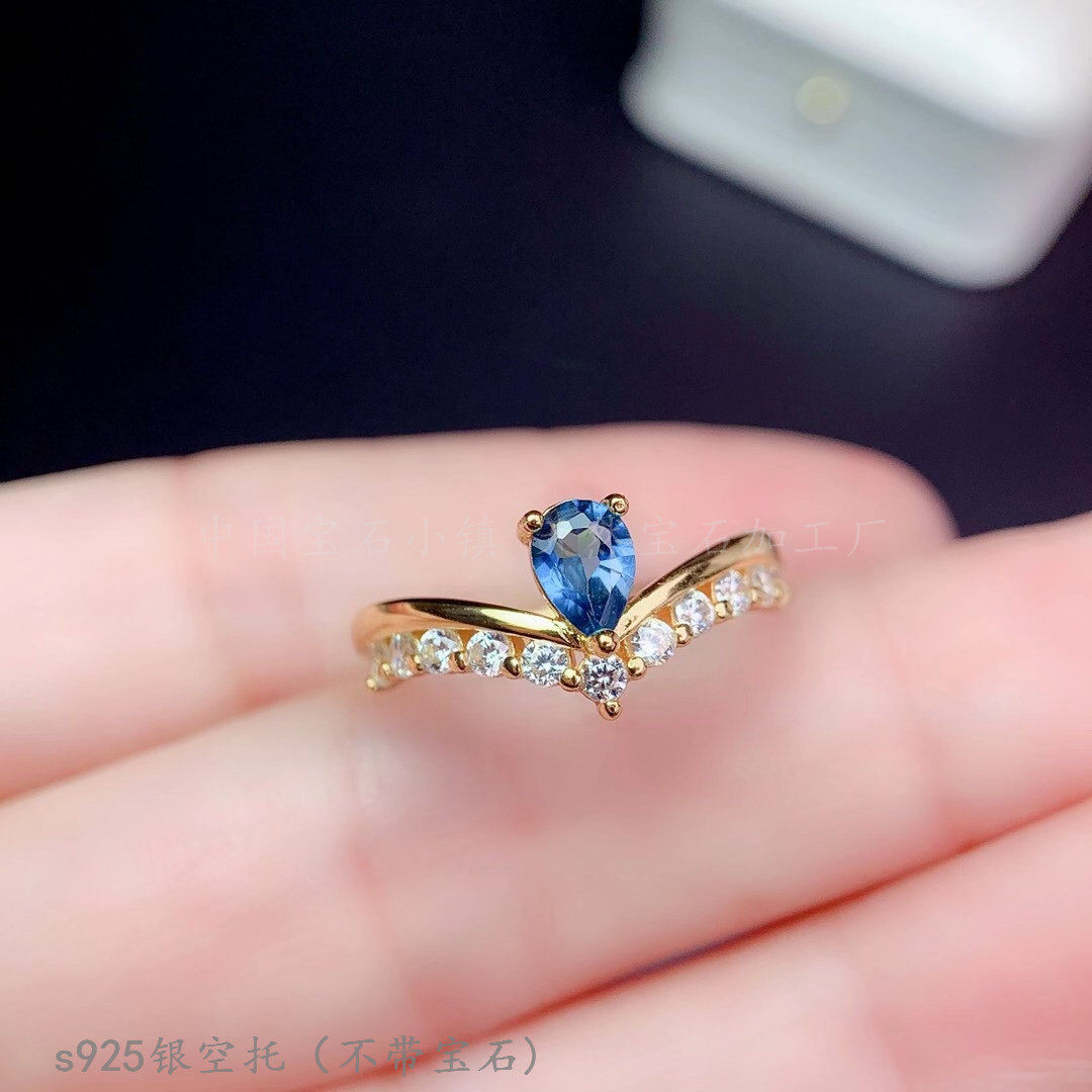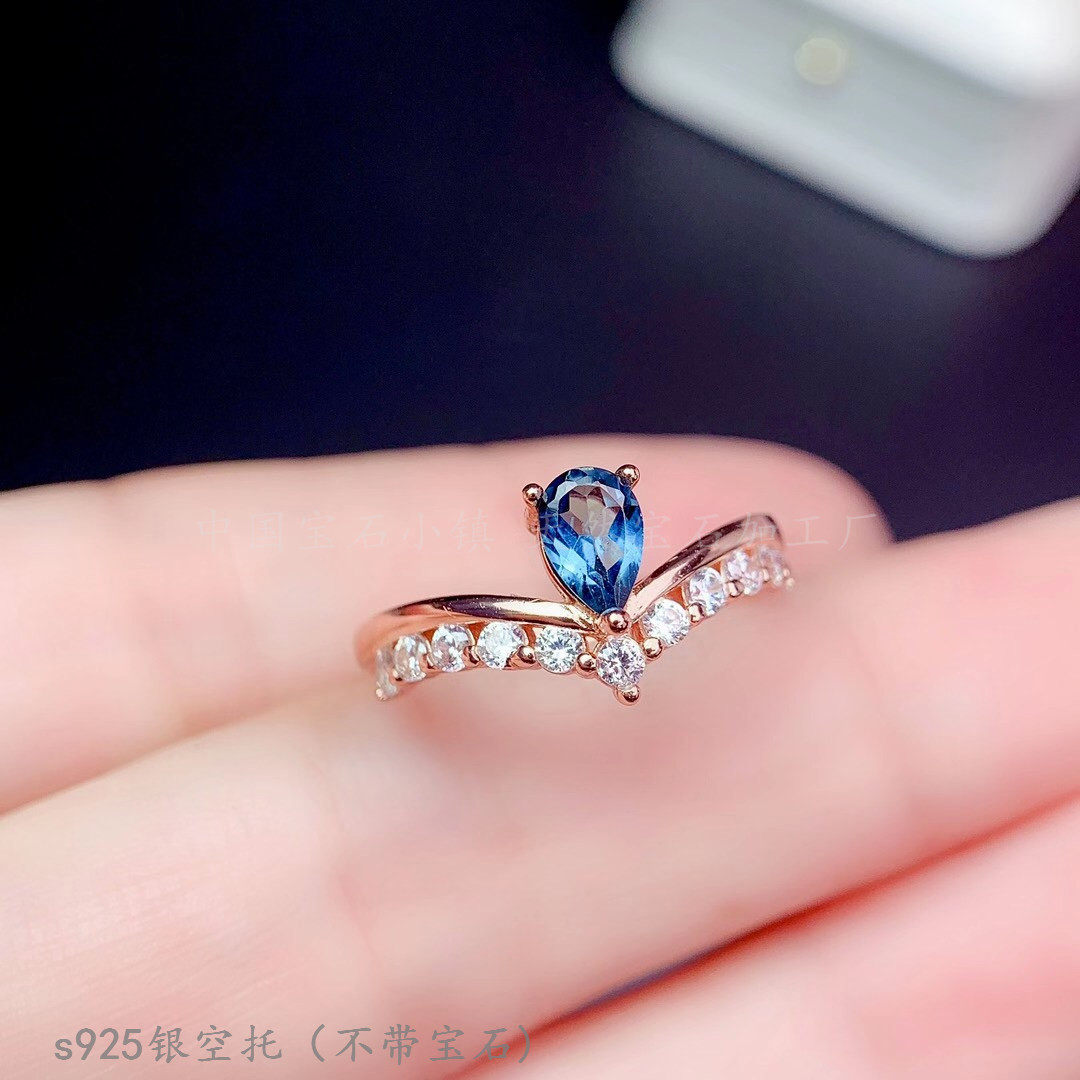 s925纯银戒指空托 水滴形4*6mm镶钳蓝色伦敦蓝 气质简约梨形女戒
