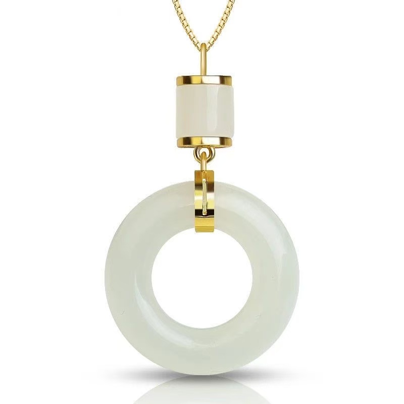 个性设计平安扣吊坠时尚大气百搭女款玉石挂件 金黄色项链送妈妈