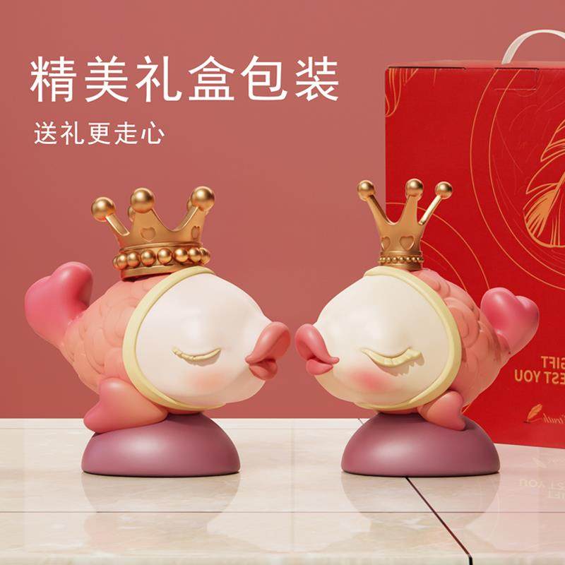 双鱼订婚摆件结婚新婚送新人礼物客厅酒柜家居装饰品乔迁新居礼品