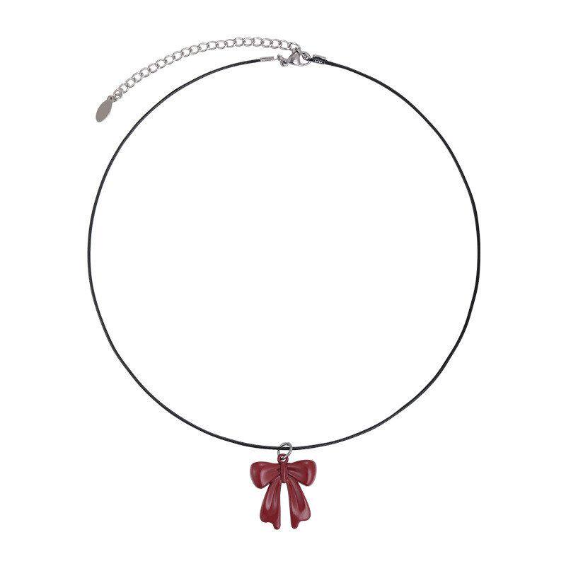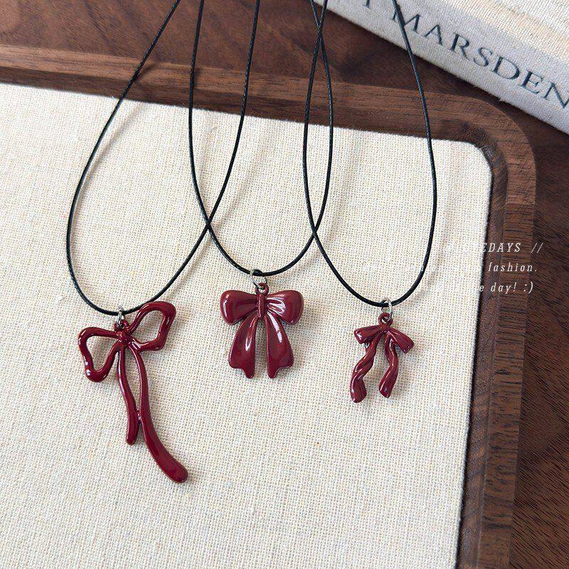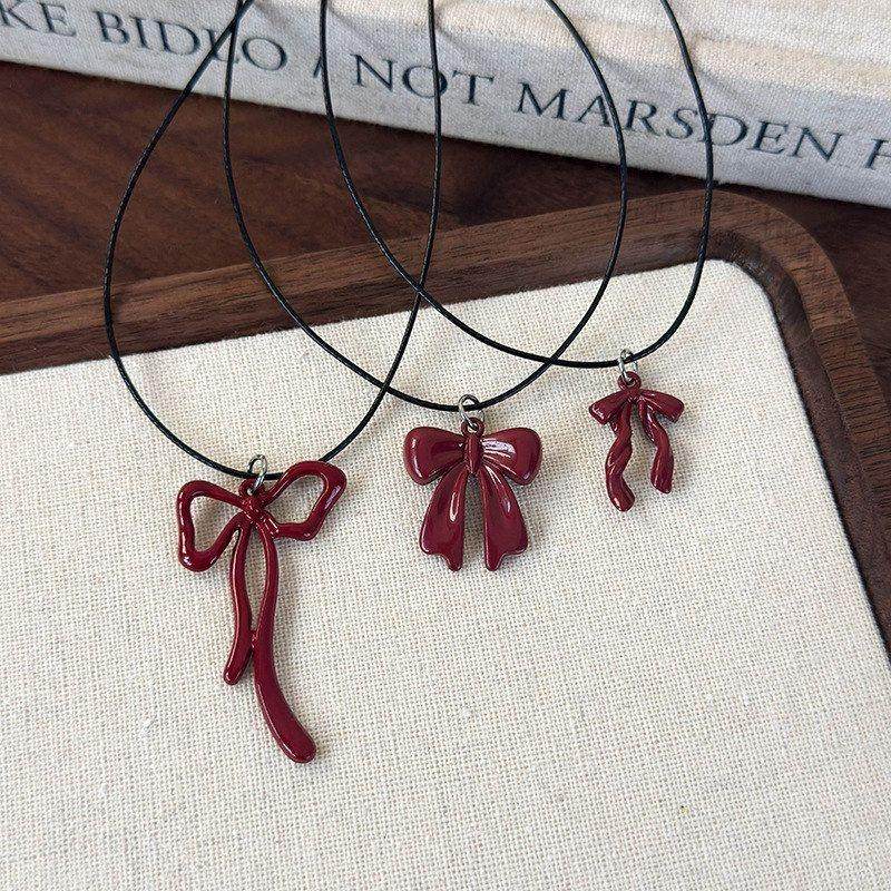 红色蝴蝶结黑色蜡绳毛衣项链女轻奢高级感小众卫衣链秋冬气质配饰