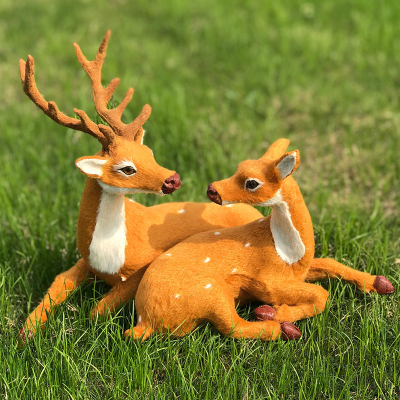 仿真梅花鹿圣诞节日装饰品家居摆件毛绒公仔动物模型麋鹿生日礼物