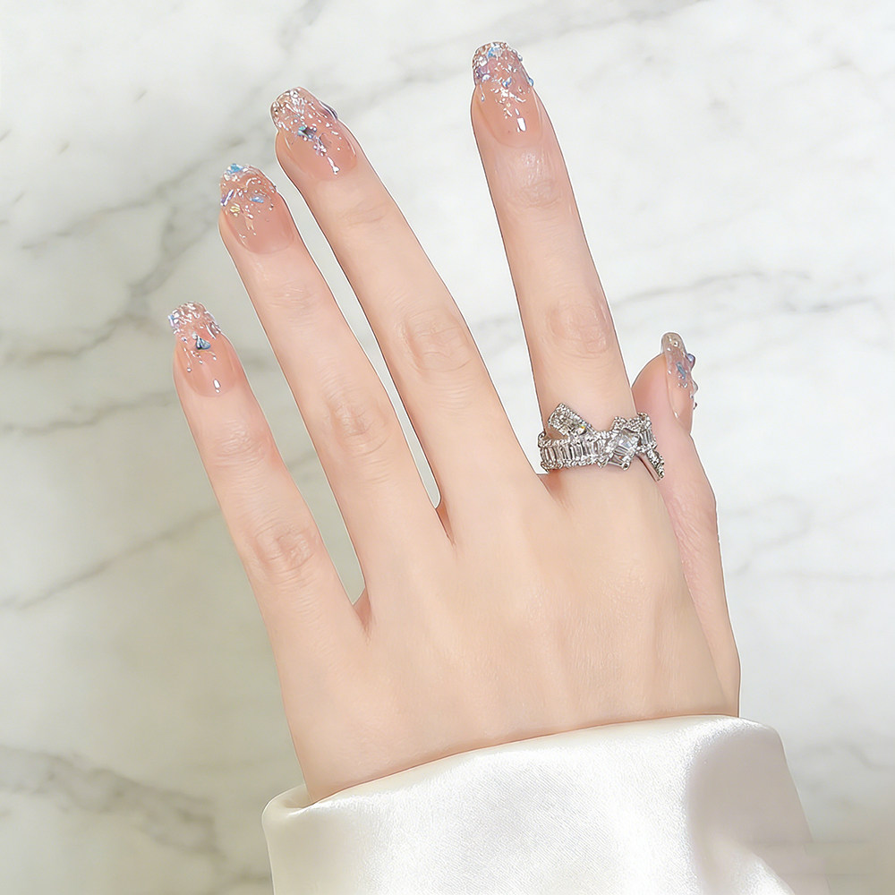 法式排钻纽结开口戒指银色超闪蝴蝶结轻奢高级感女简约百搭指环
