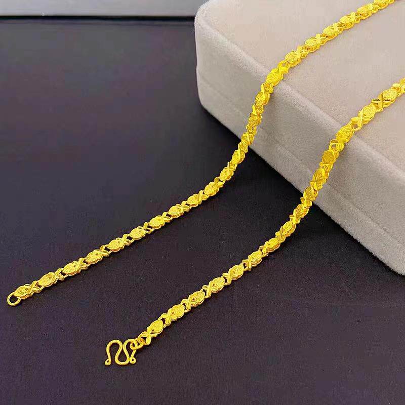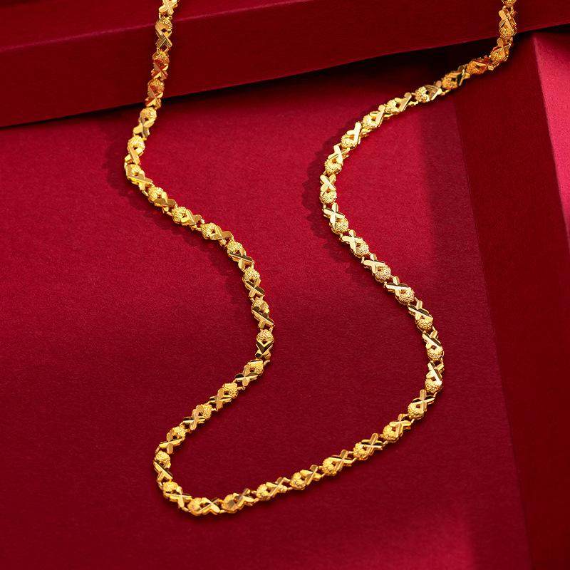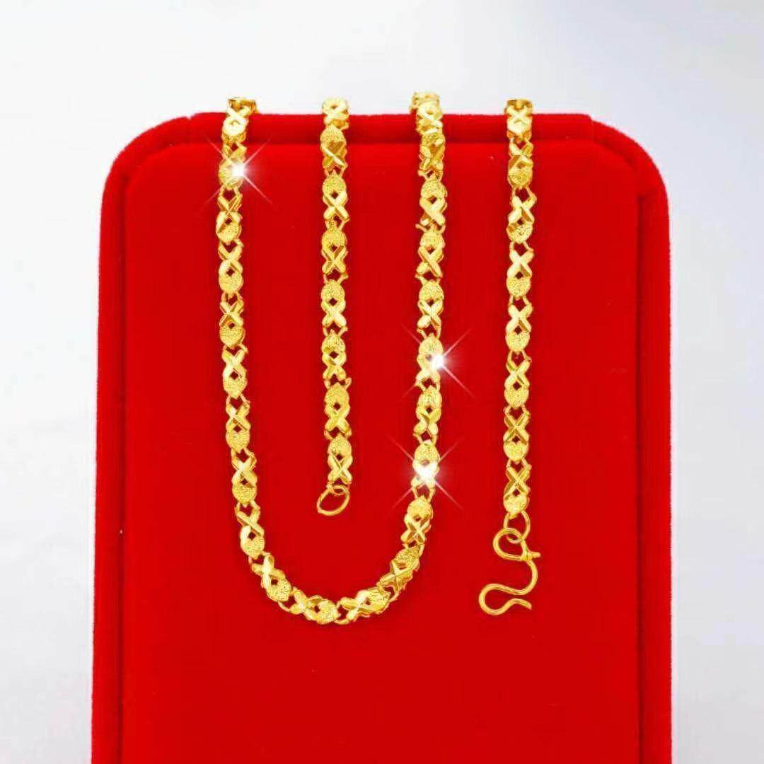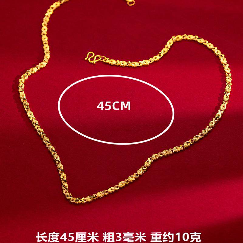 爱心黄金色项链女款24K纯金色链子素链M扣防过敏送老婆粗细结实