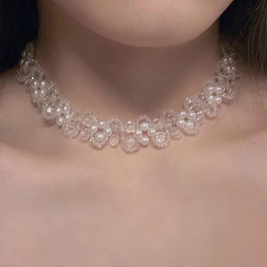 气质超仙白色蕾丝水晶珍珠项链女性感纯欲风choker百搭锁骨链颈链