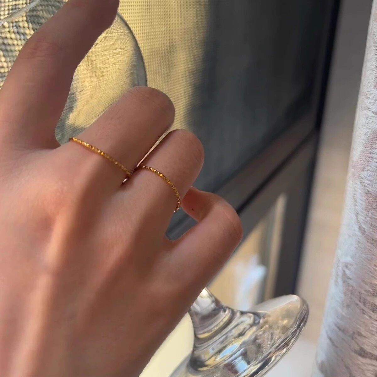 大码粗手指戒指女胖MM闪烁纹极细素圈单圈压纹大圈口食指关节指环