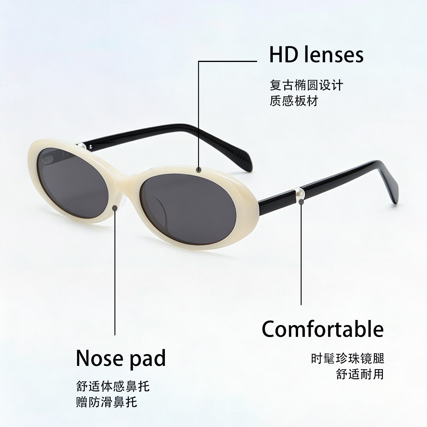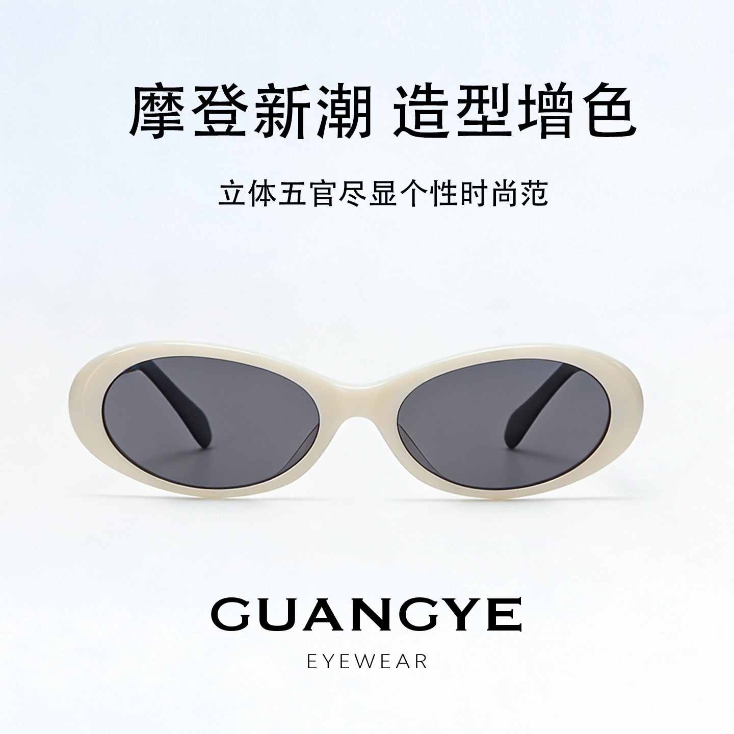 光野白色墨镜女高级感椭圆框太阳眼镜防紫外线UV400适合方圆脸男