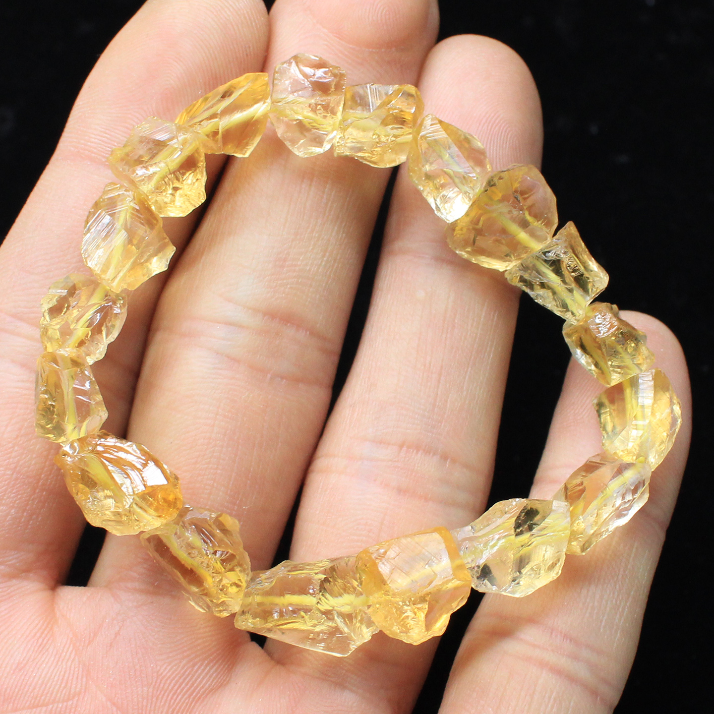 如鸿天然黄水晶原石手链女士矿物宝石男士手串随形石头饰品礼物