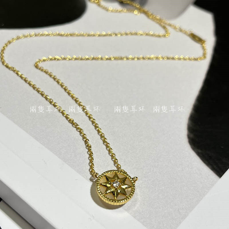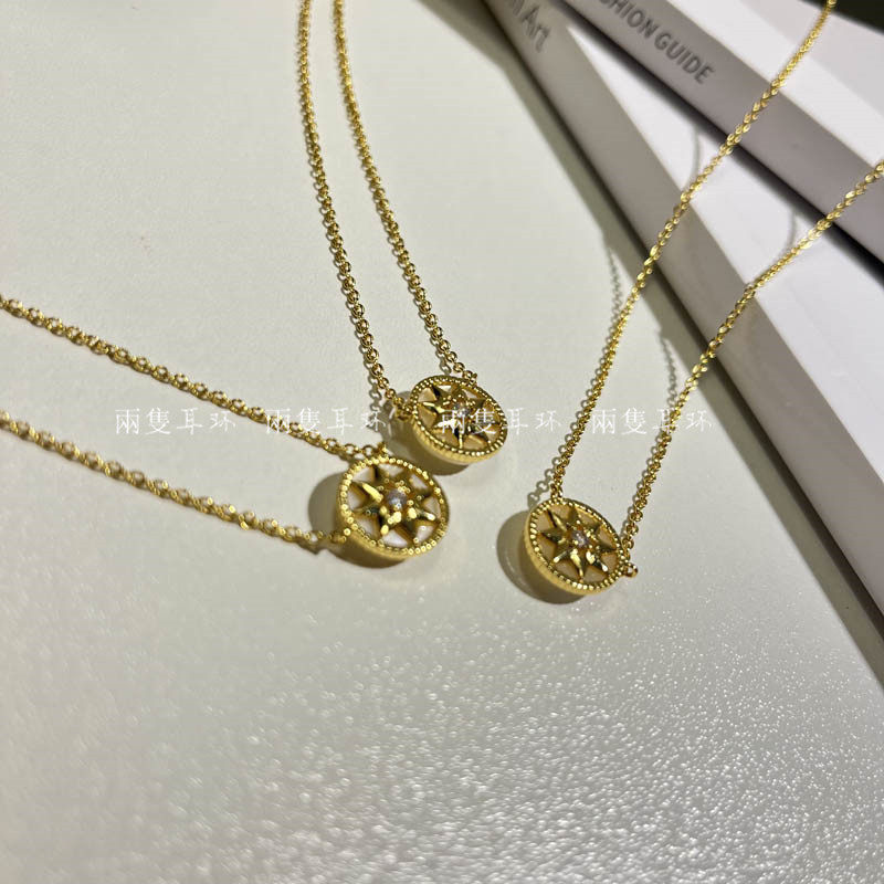 精致小姐姐!时髦小众D款白色八芒星罗盘项链法式气质简约锁骨链