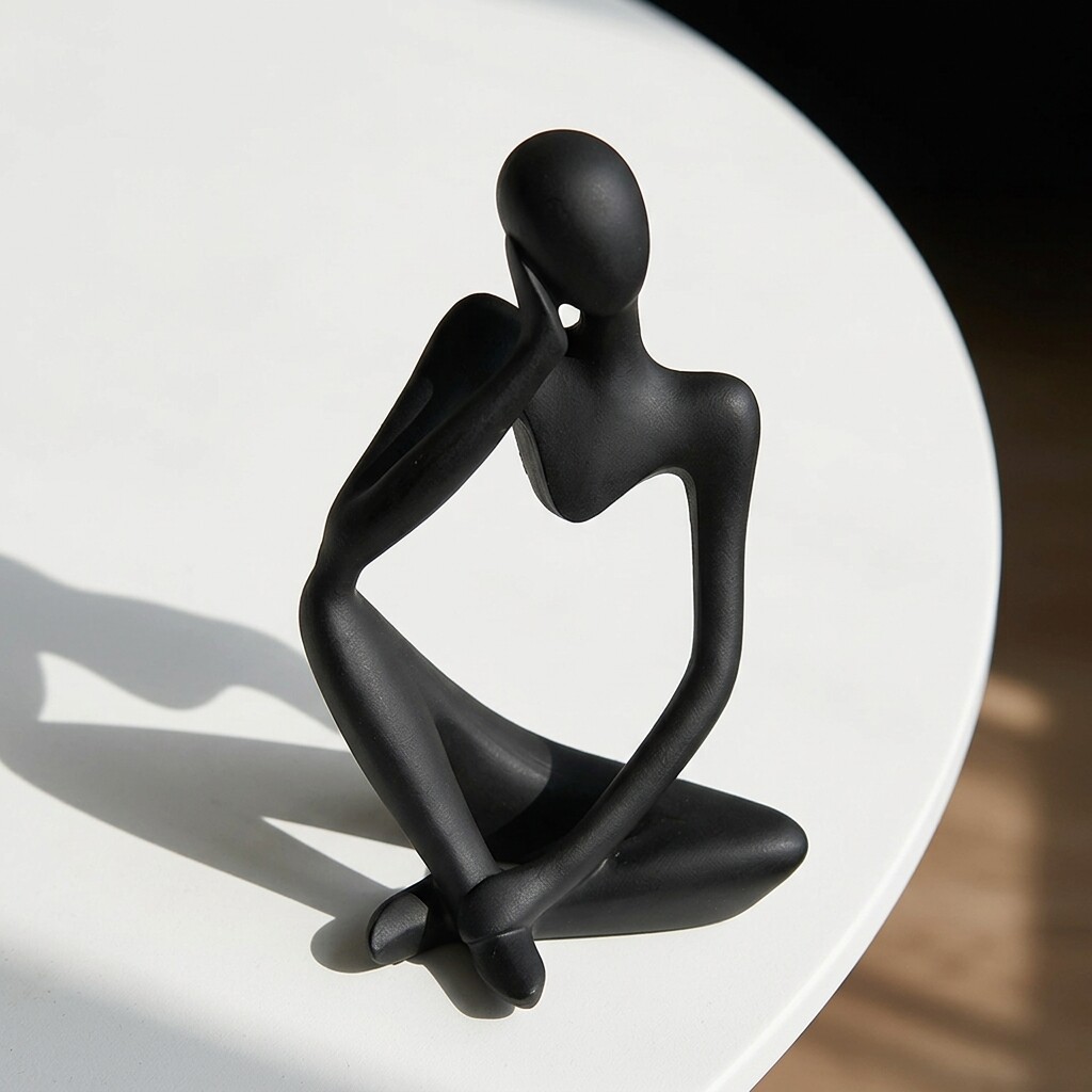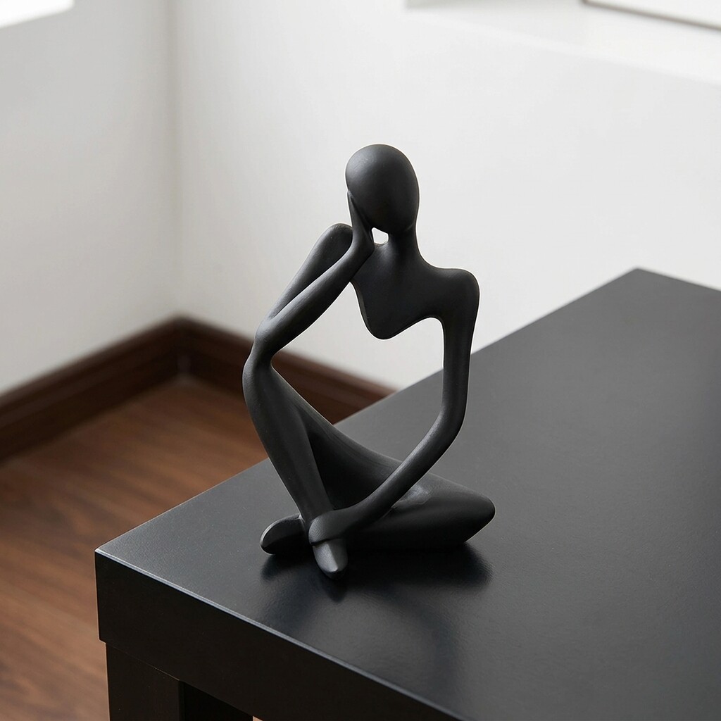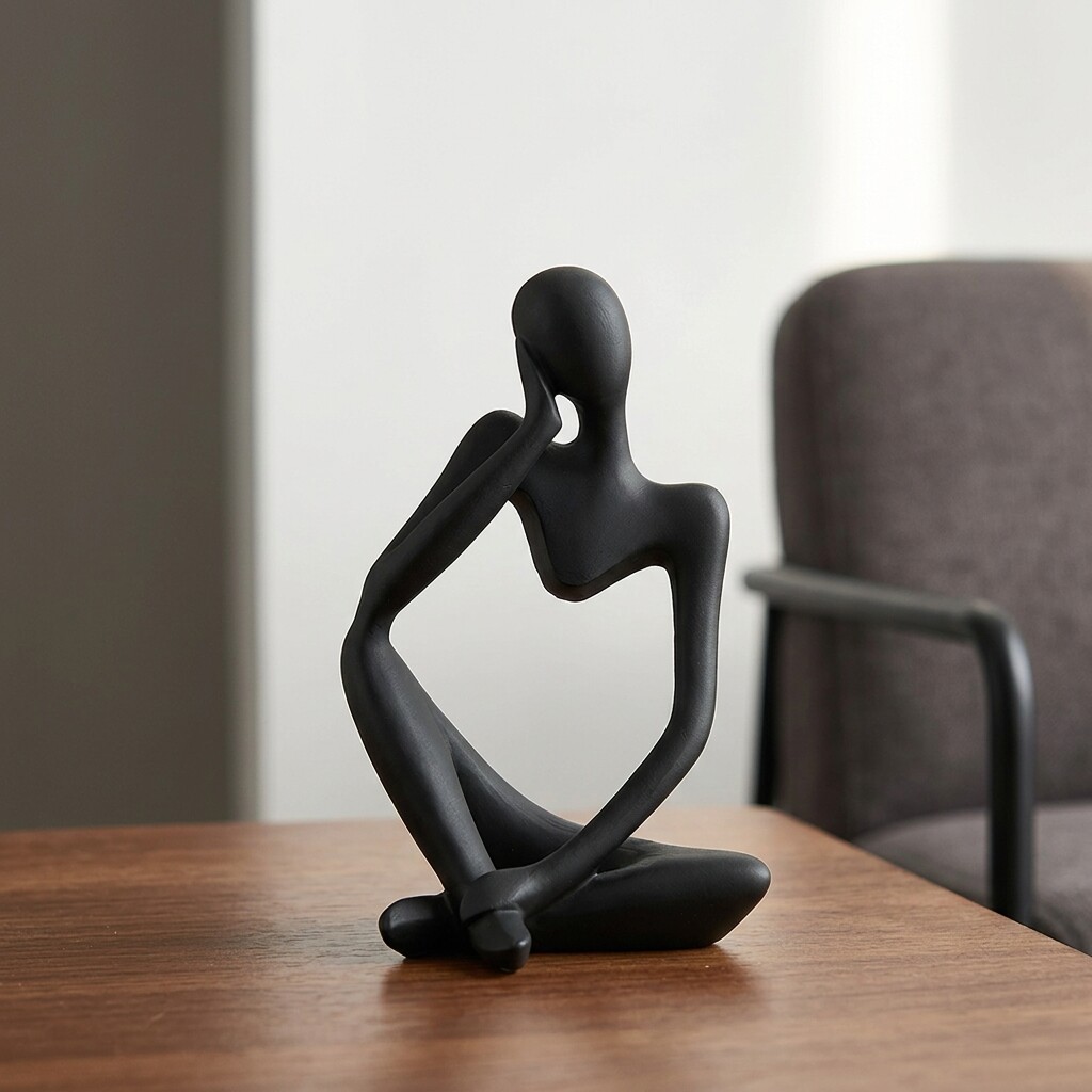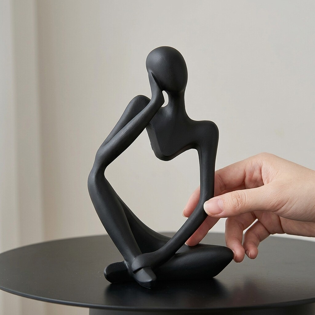 现代简约抽象人物雕塑摆件黑色树脂装饰品家居桌面工艺品