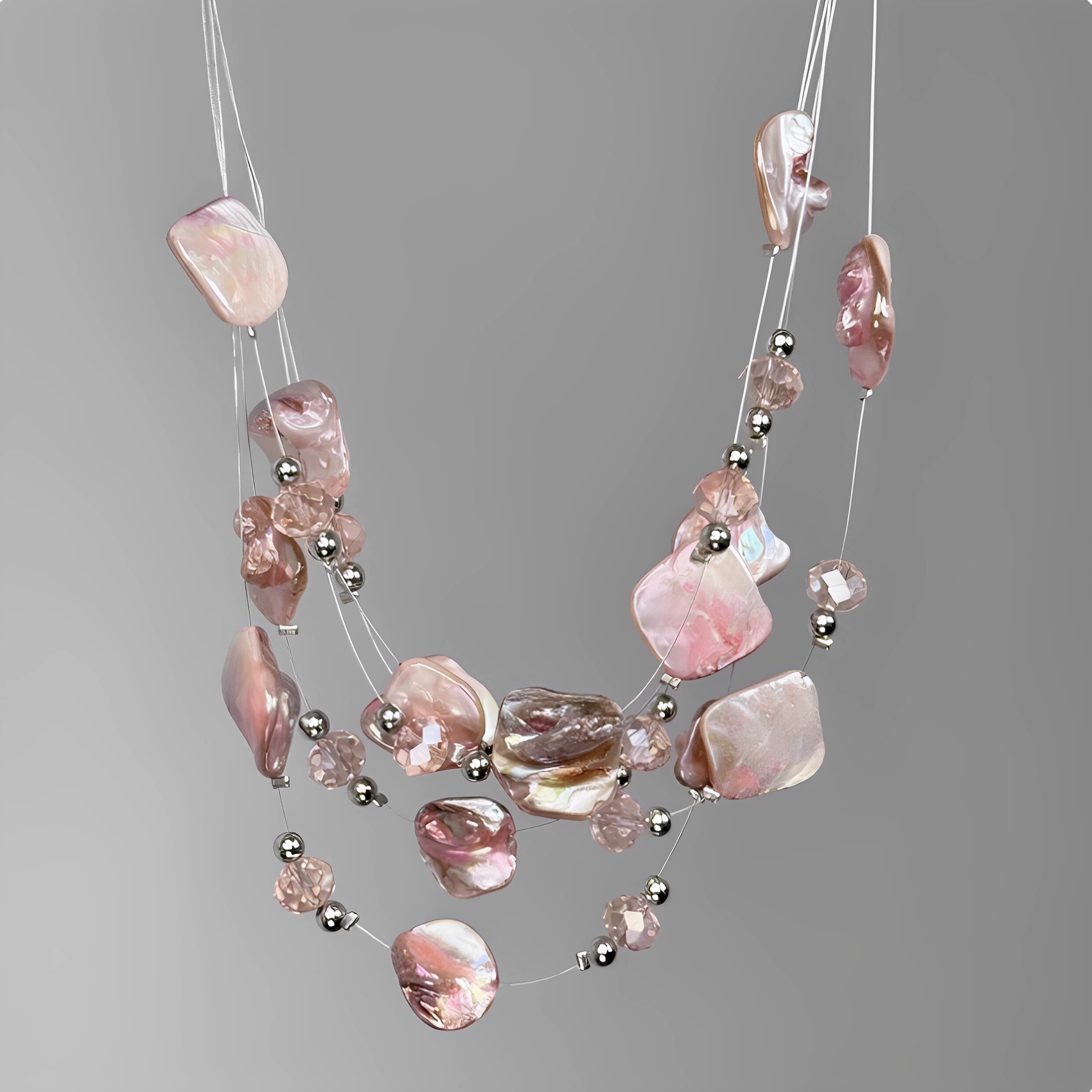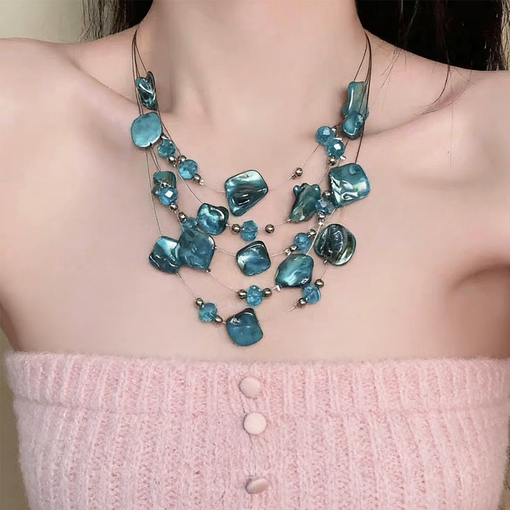 波西米亚风异形不规则粉蓝色贝壳项链女小众个性度假风多层锁骨链