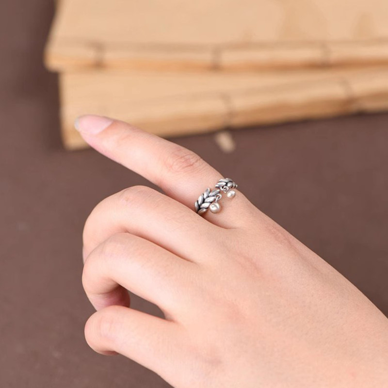 穗穗平安戒指女小众设计高级感925纯银麦穗开口戒复古风做旧指环