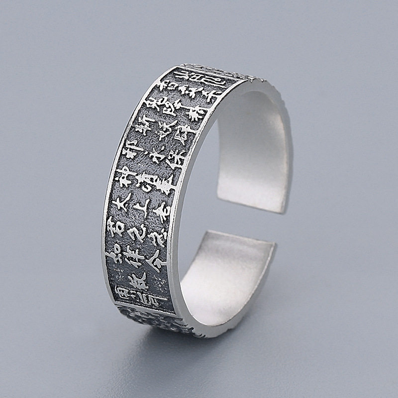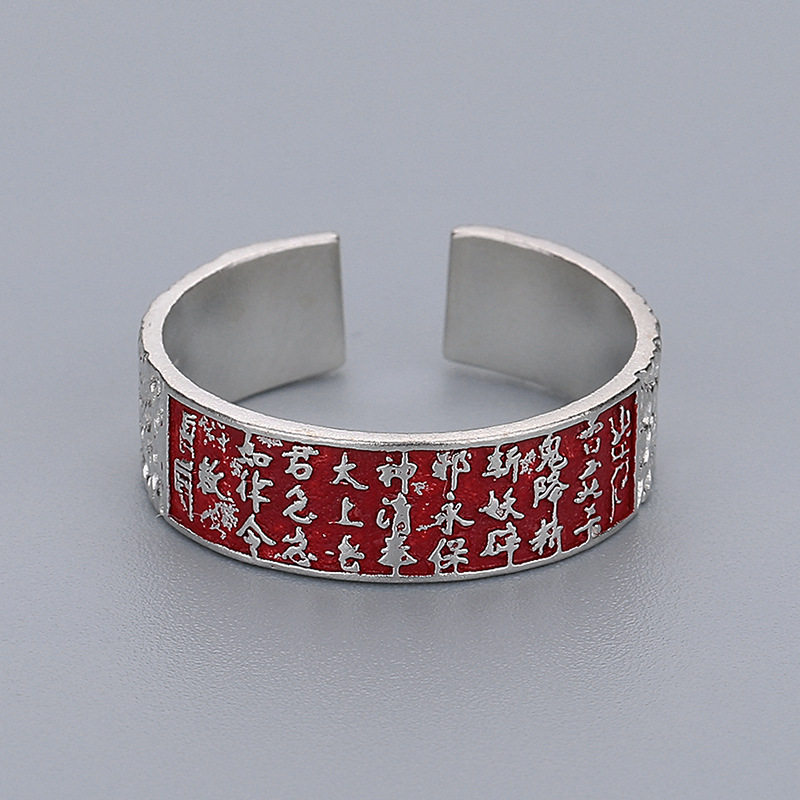 S925纯银道系雷令山鬼花钱戒指新中式复古朱砂锤纹传统文化指环