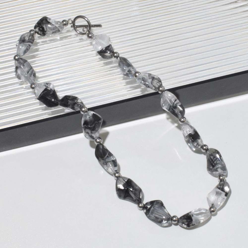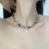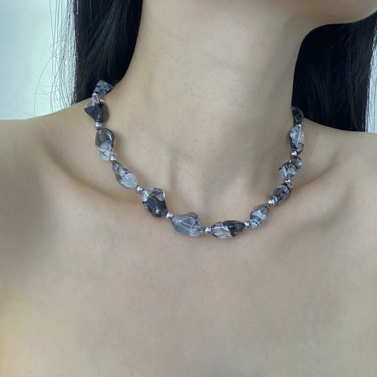 欧美时尚灰色不规则水晶项链女异型玻璃串珠颈链高级感百搭锁骨链