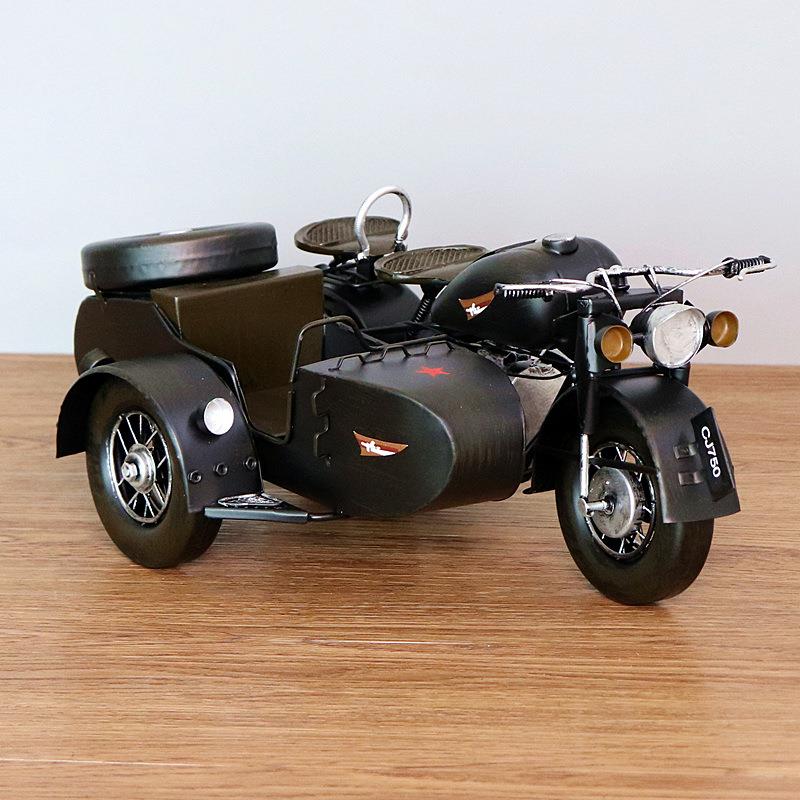 复古铁艺偏三轮侉子摩托车仿真长江750挎斗车模型橱窗收藏品摆件
