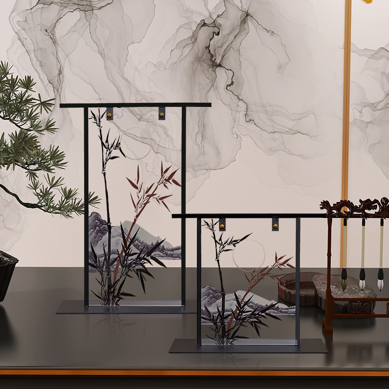 新中式茶室禅意复古中国风竹子玄关办公室书房桌面家居装饰品摆件
